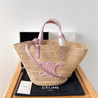 Celine Teen Supple Classic Panier 22cm Pink Calfskin Beige Raffia