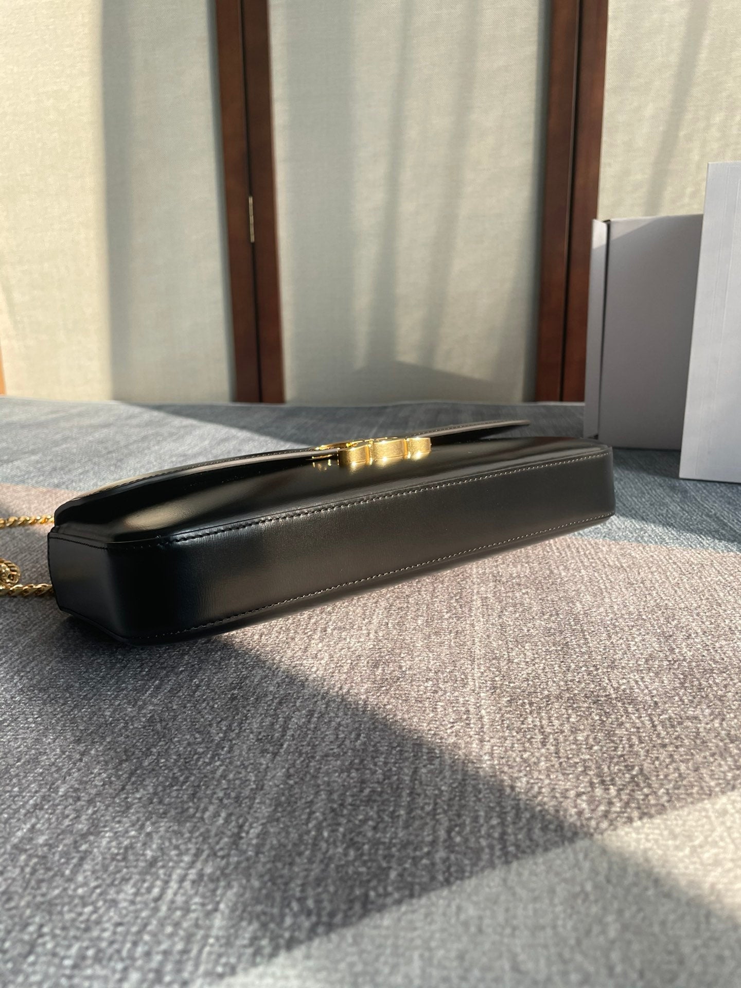 CHAIN SHOULDER BAG CLAUDE 33 IN BLACK CALFSKIN GOLD HARDWARE