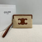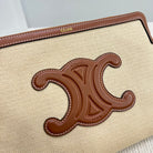 SMALL POUCH 25 IN BEIGE CANVAS AND BROWN CALFSKIN