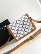 - Color: White Blue Canvas, Brown Leather, Gold hardware