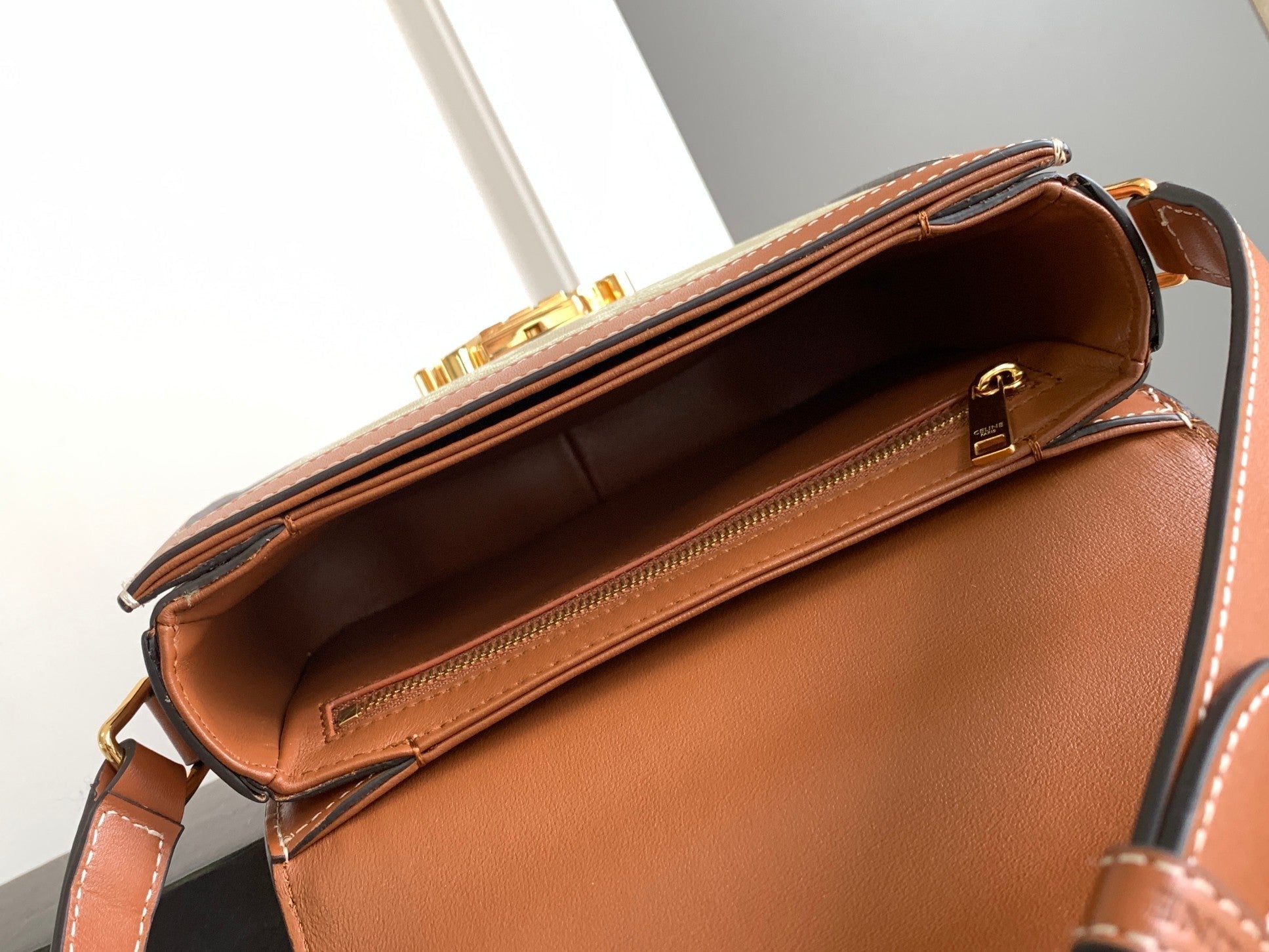- Color: Beige monogram canvas, tan calfskin, Gold hardware
