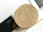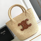 teen triomphe straw bucket bag 23cm raffia brown calfskin