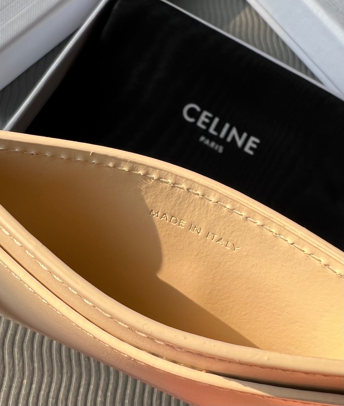 TRIOMPHE 10B703 Card Holder Beige Cowhide Leather