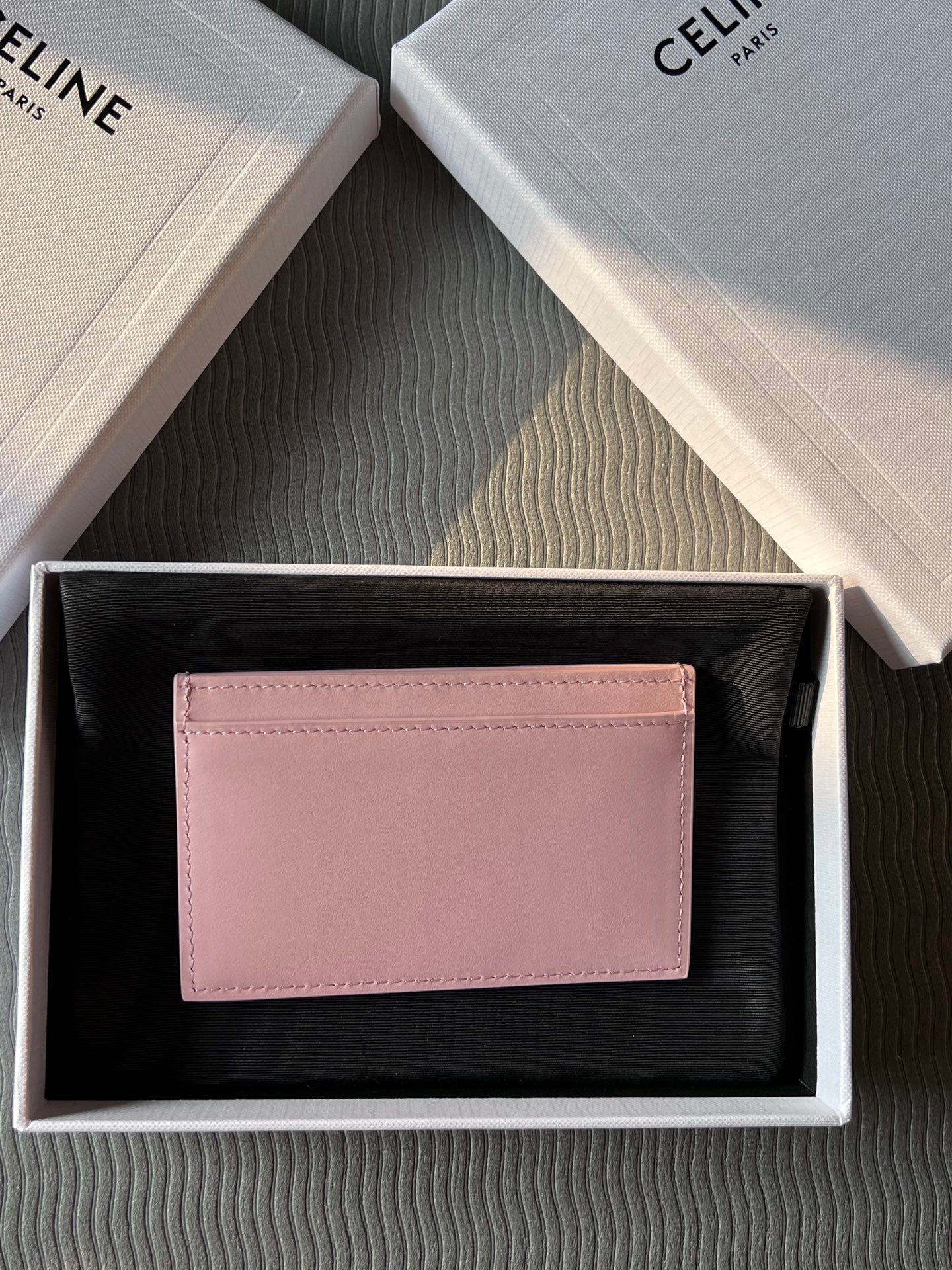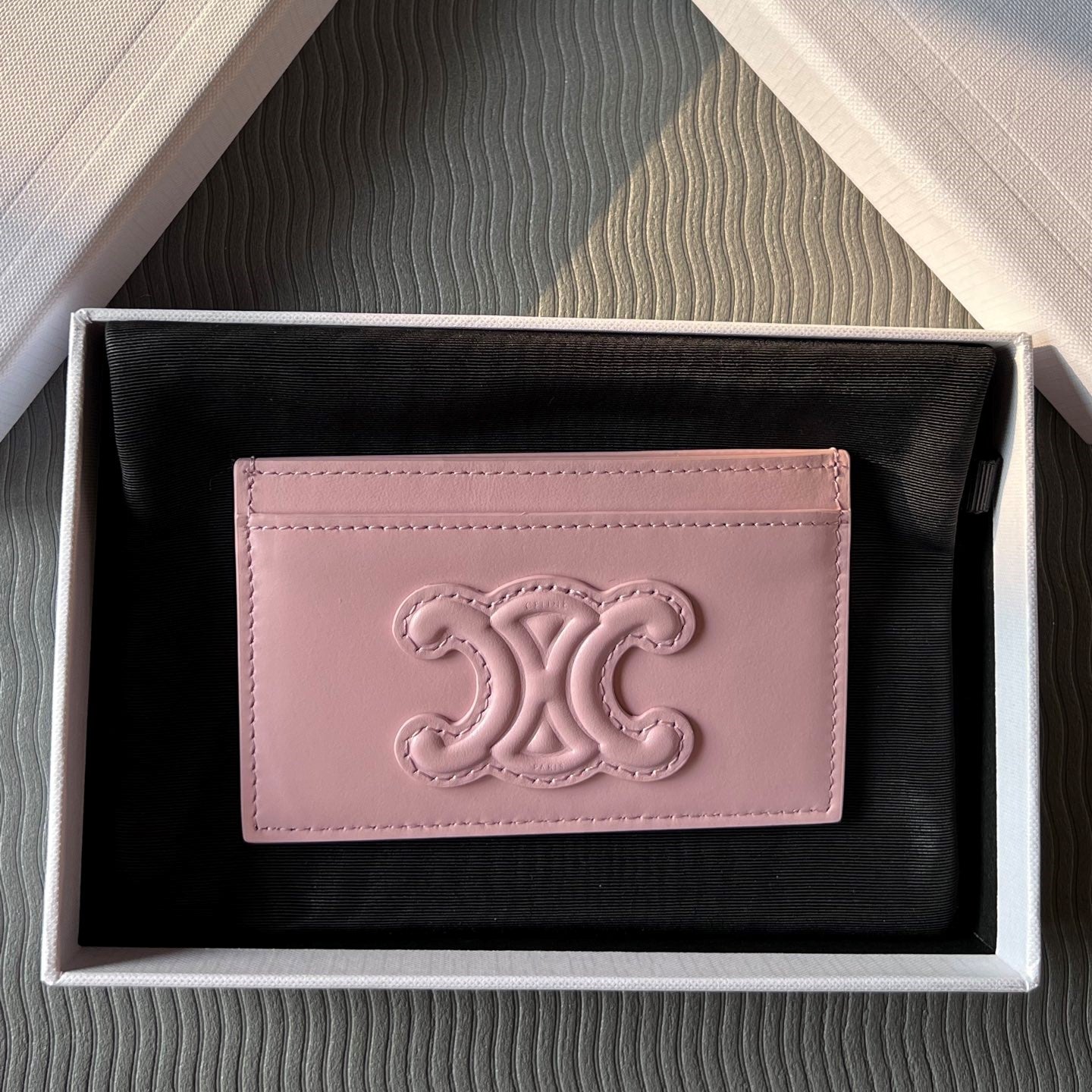 TRIOMPHE 10B703 Card Holder Pink Cowhide Leather