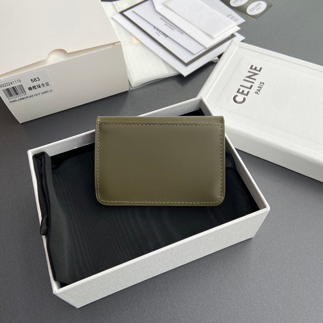TRIOMPHE 10i583 Flap Card Holder Olive Green Shiny Cowhide