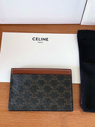 TRIOMPHE 10B702 Card Holder Logo Print Tan Cowhide& Fabric