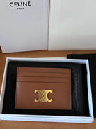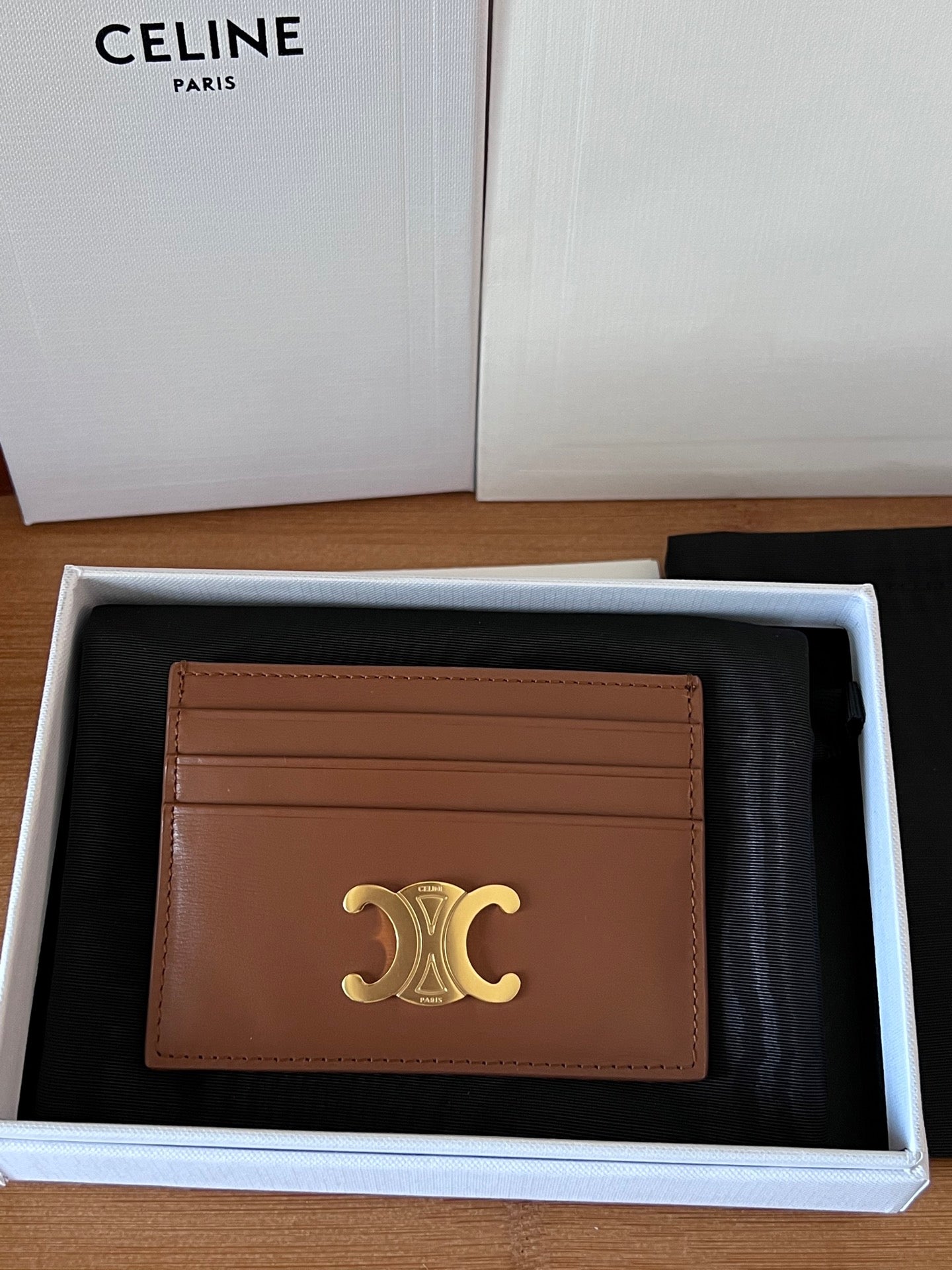TRIOMPHE Card Holder Tan Cowhide& Fabric GHW