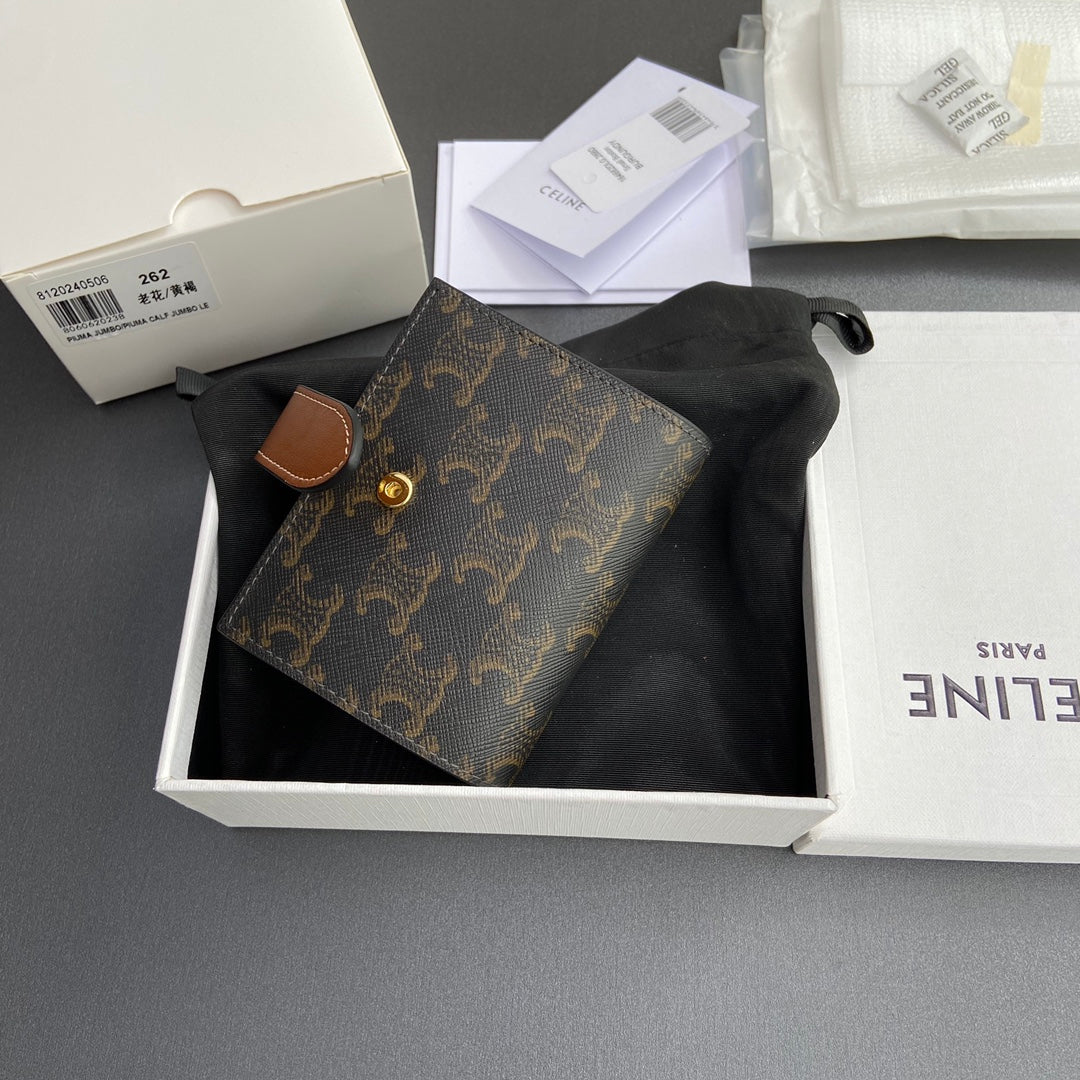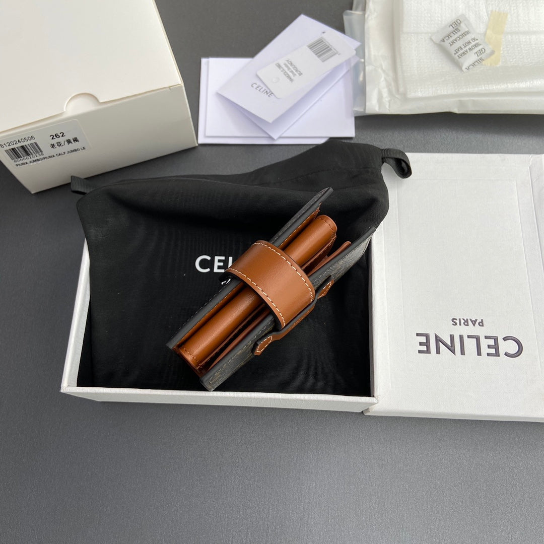 TRIOMPHE Celine Small Strap Wallet Tan Canvas&Cowhile