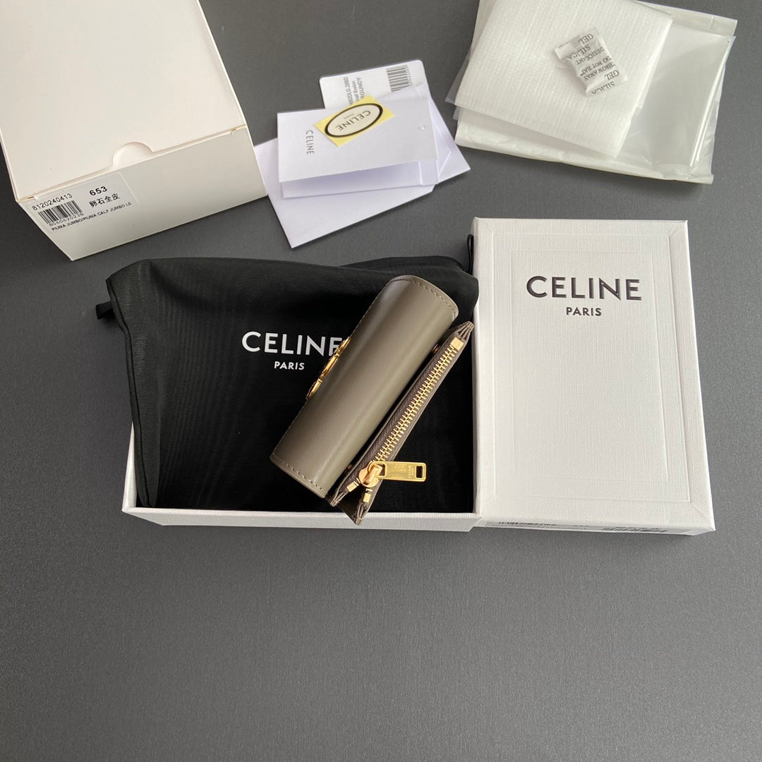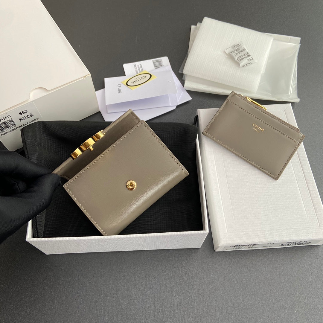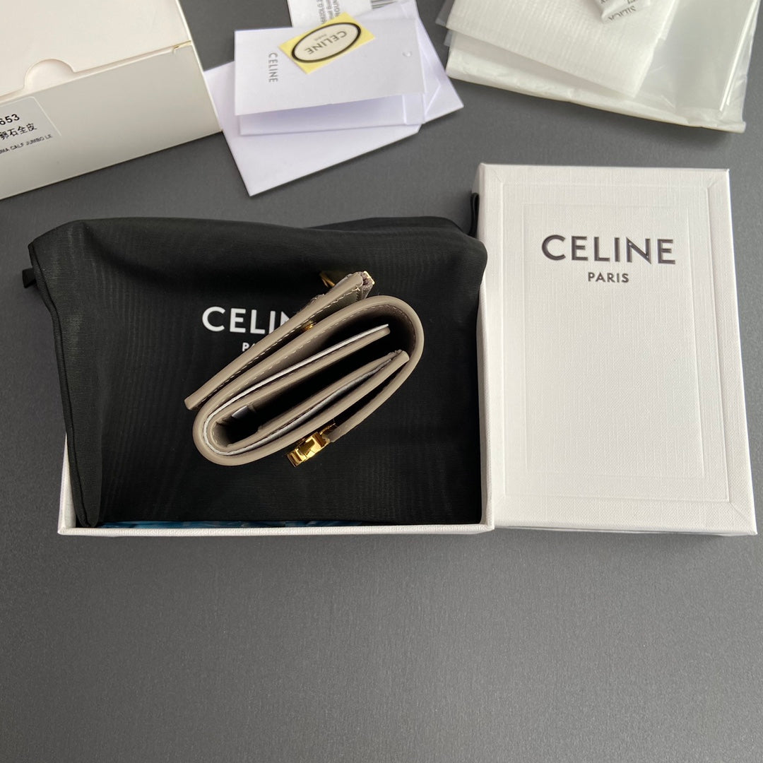 TRIOMPHE Compact Wallet With Coin Purse Modern Taupe Leather