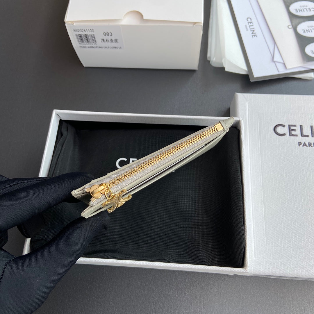 TRIOMPHE Zipped Card Holder Charms Beige Grained Cowhide