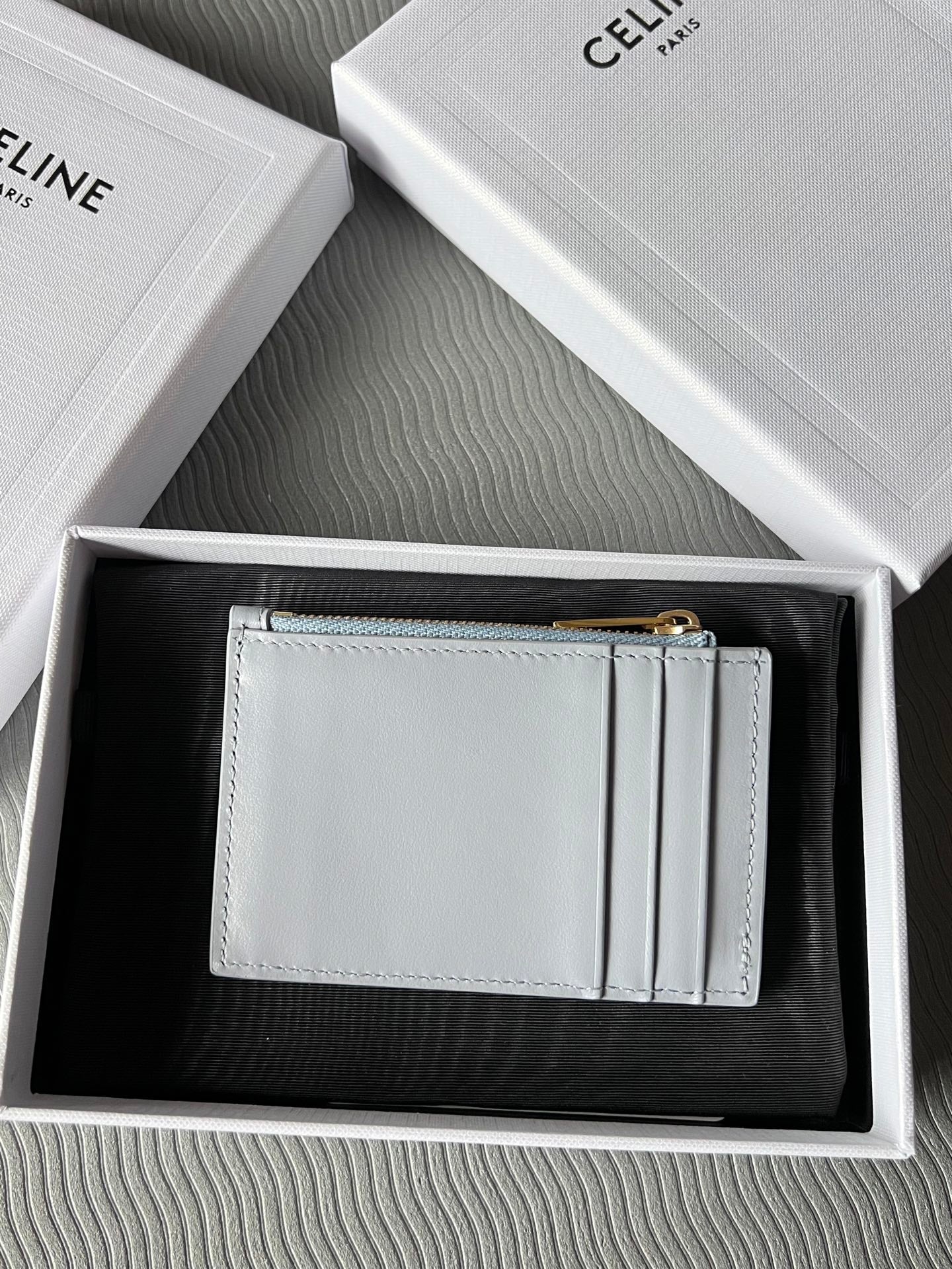 TRIOMPHE Zipped Card Holder Glacier Cowhide Leather