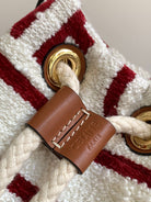 • Material: fabric lining, hand carry, drawstring closure, leather handle length 13 cm