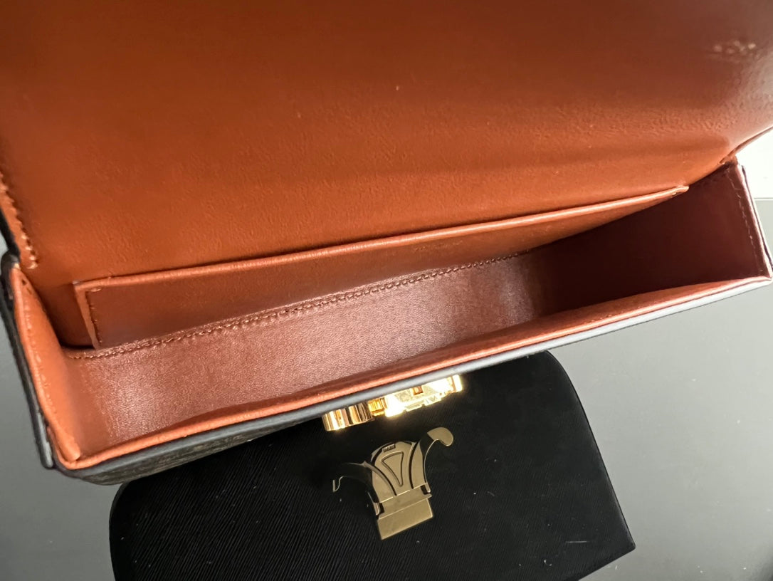 TRIPHOME 20 BLACK PATTERN COWHIDE LEATHER CHAIN STRAP BAG