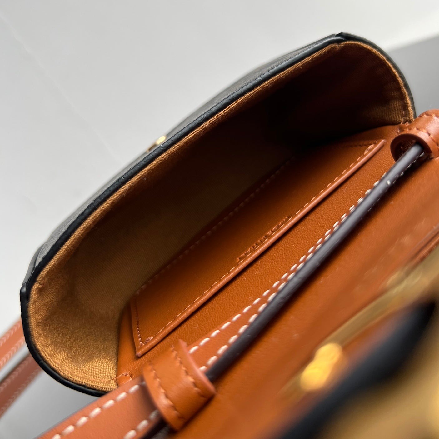 SMOOTH CALFSKIN 20 OVAL CINNAMON BLACK BAG