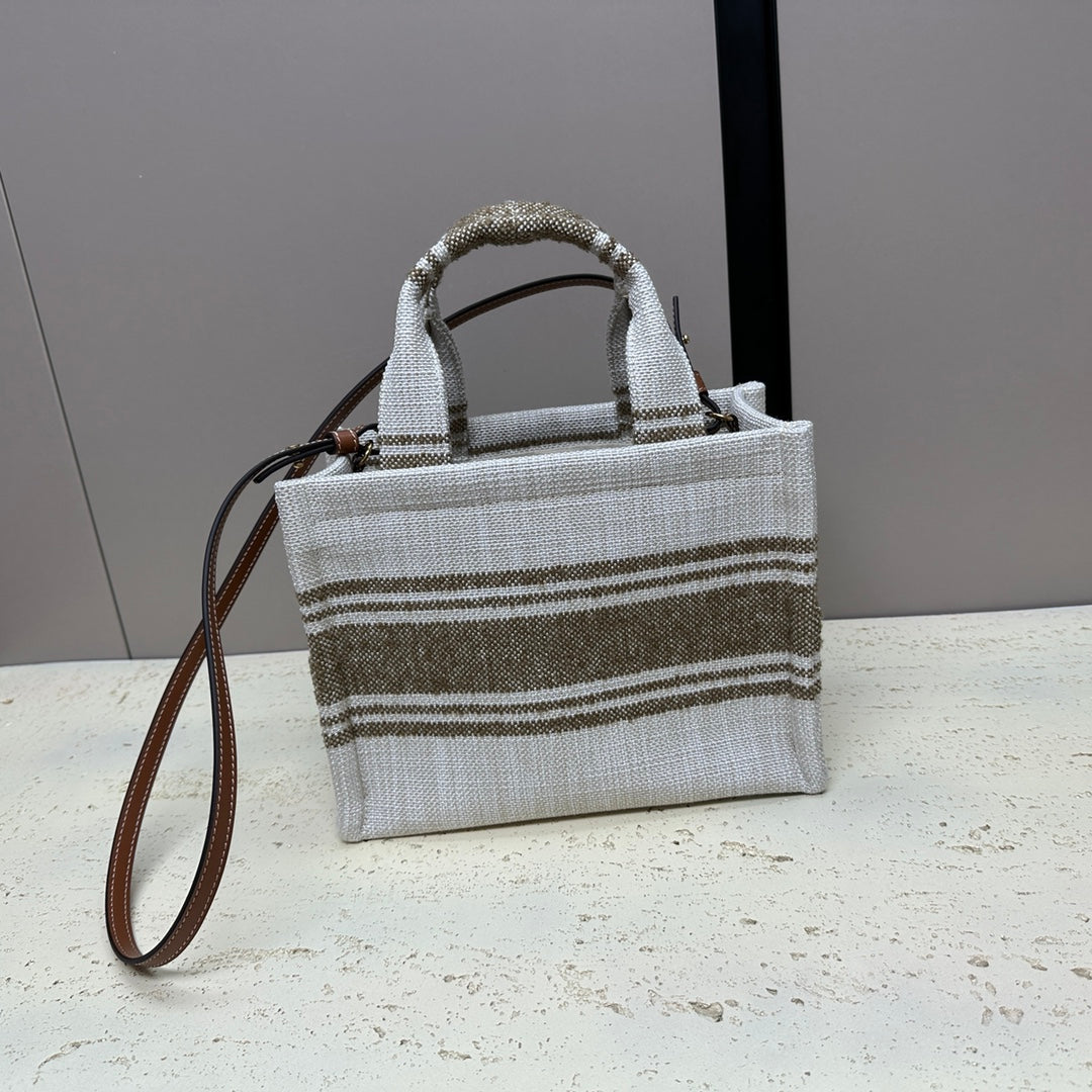BESACE 23 IN WHITE CANVAS AND BROWN CALFSKIN