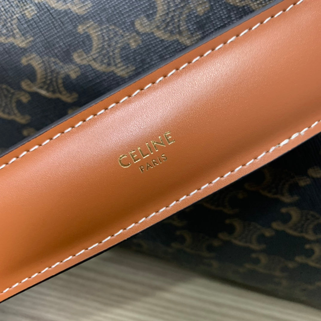 SMALL POUCH 25 IN BLACK TRIOMPHE CANVAS AND BROWN CALFSKIN WITH CELINE PRINT