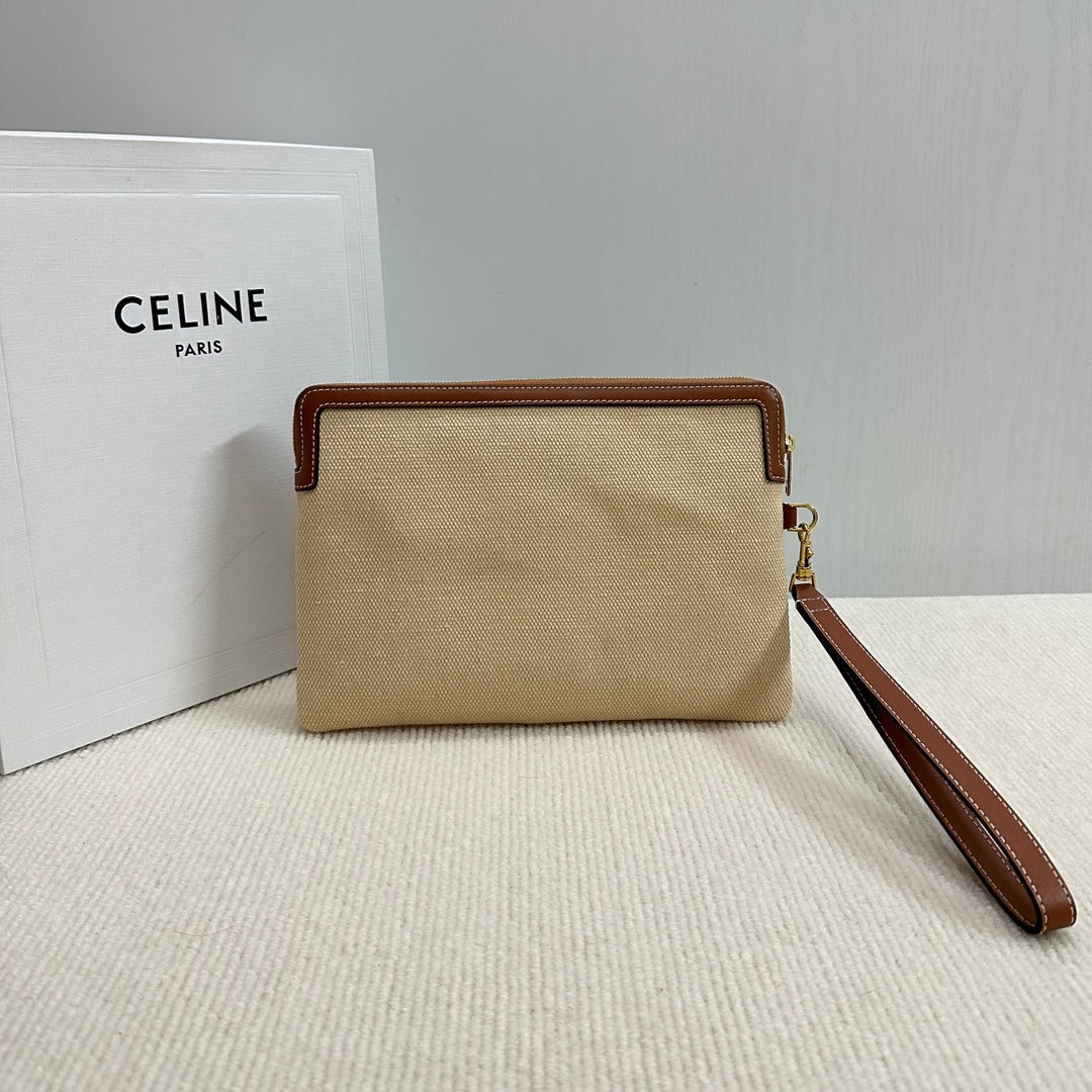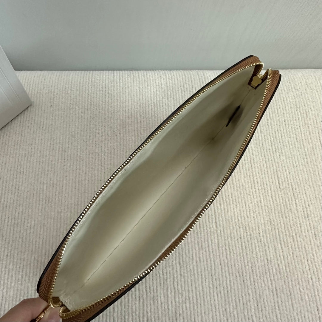 SMALL POUCH 25 IN BEIGE TRIOMPHE TEXTILE AND BROWN CALFSKIN