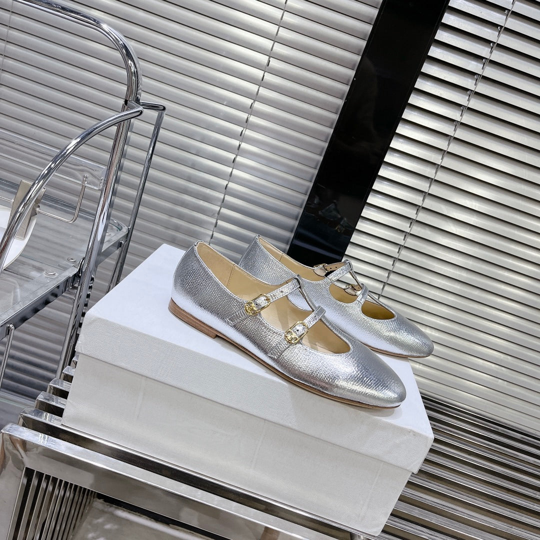 MARRY JANE FLAT IN SILVER CALFSKIN
