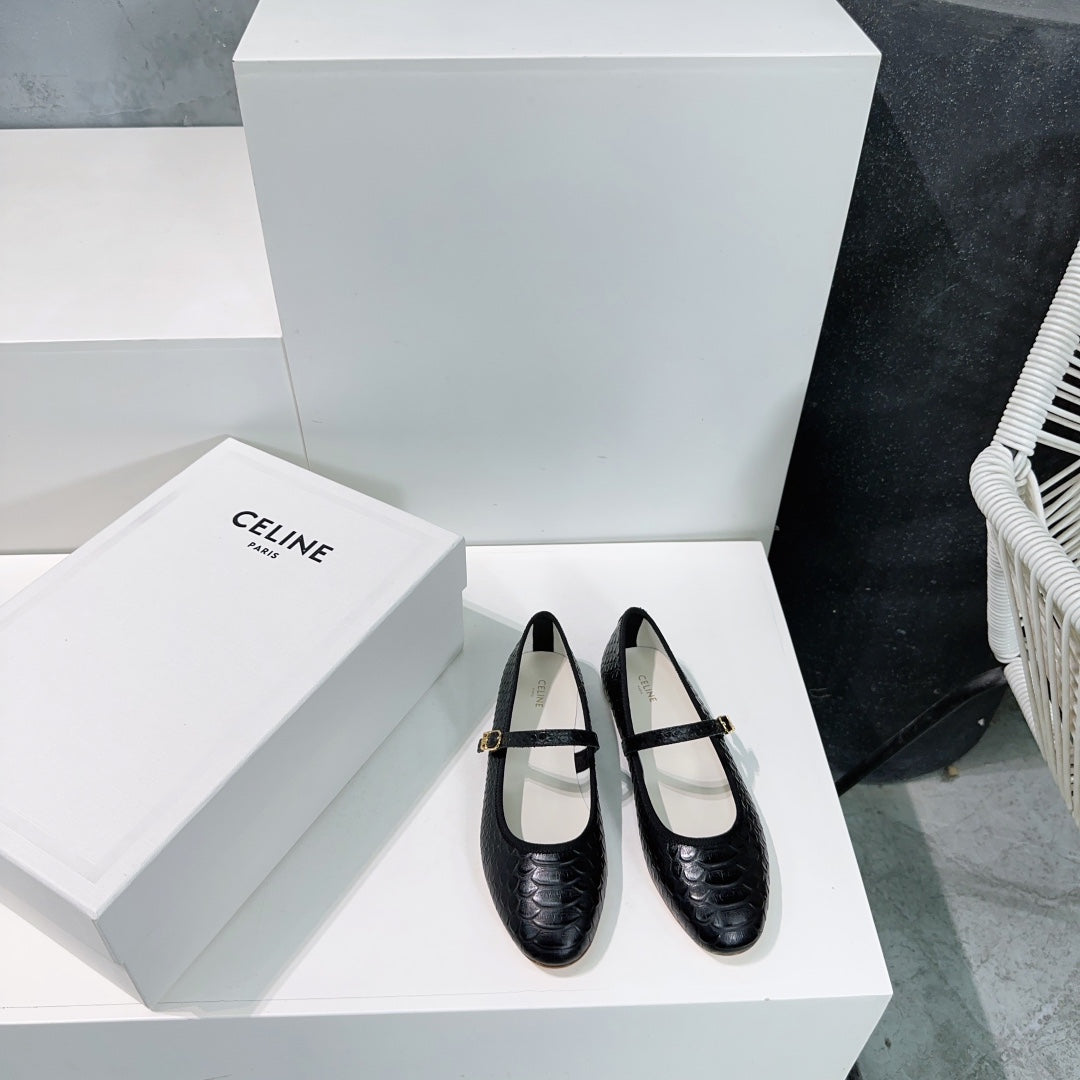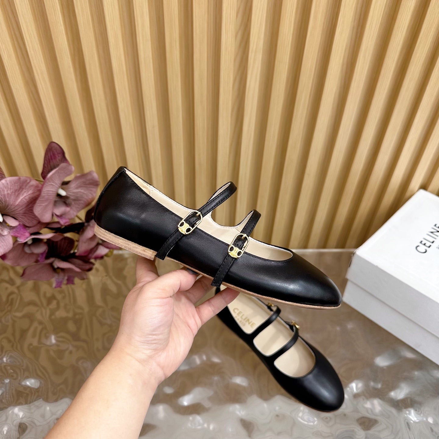CELINE 25C Ballet Flats Black Patent Leather 236744