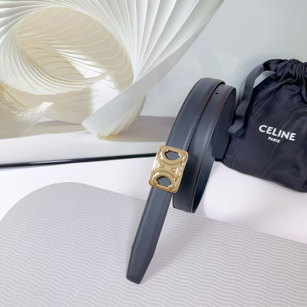 Medium Triomphe Belt 25mm Black Calfskin Gold Finishing