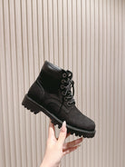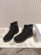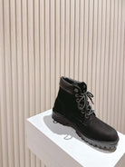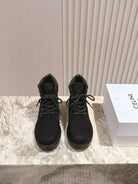 CELINE Kurt Lace-Up Martin Short Boots Black Nubuck Calfskin 452783