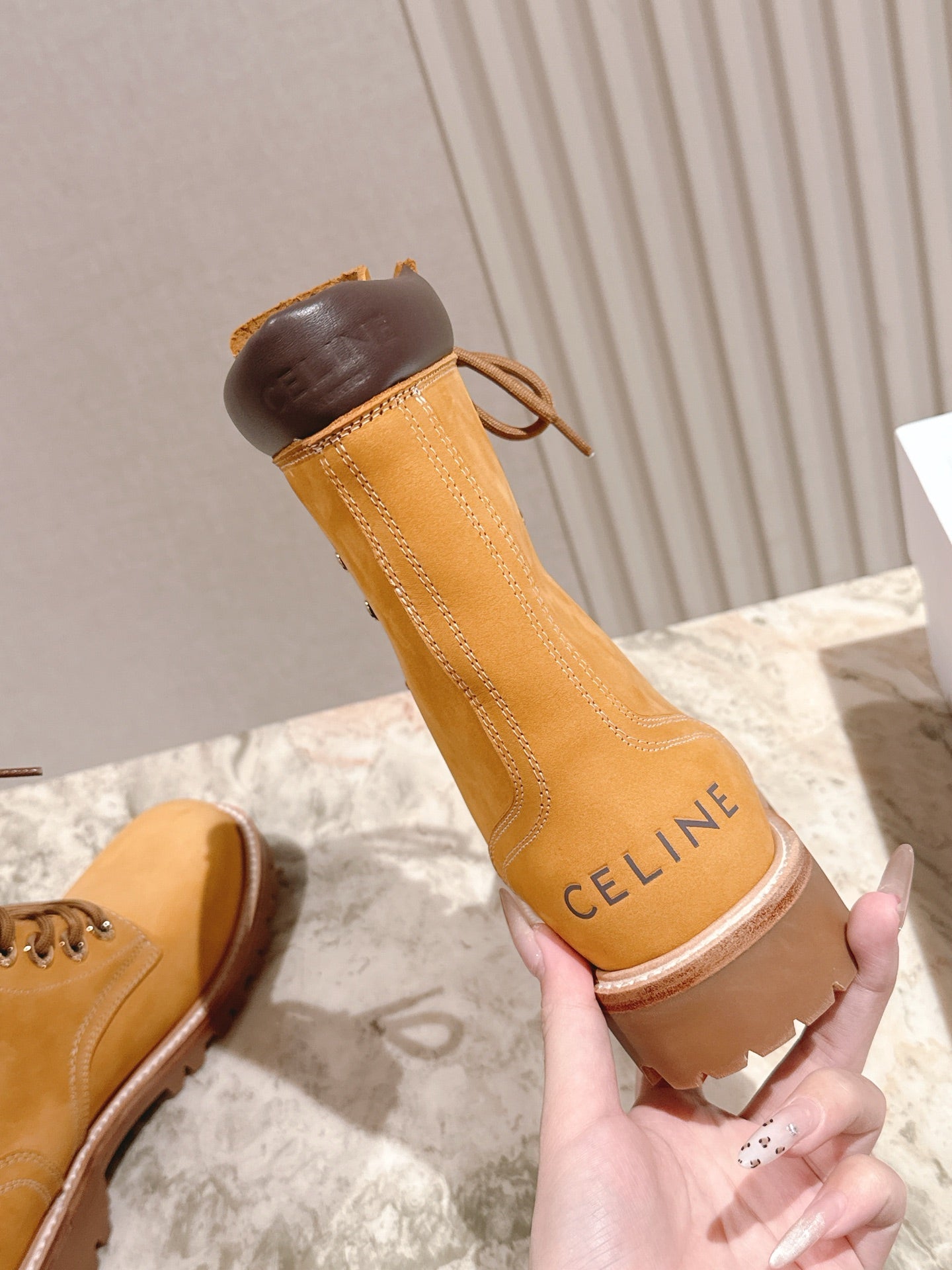 CELINE Kurt Lace-Up Mid Boot Light Brown Nubuck Calfskin 452784