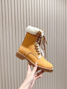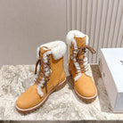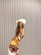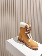 CELINE Kurt Lace-Up Mid Boot Light Brown Nubuck Calfskin And Shearling 452786
