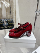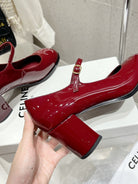 HIGH MARY JANE SHOES IN GARNET RED PATENT CALFSKIN
