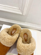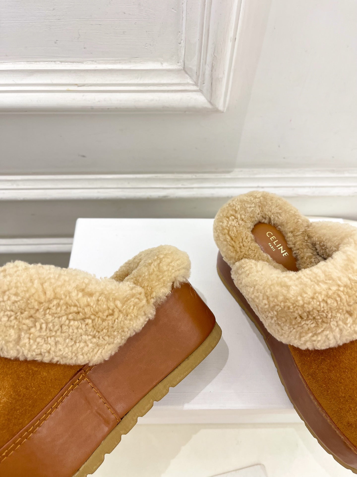 CL 25s Dana Wedge Mule 80mm Brown Beige Suede Calfskin & Shearling