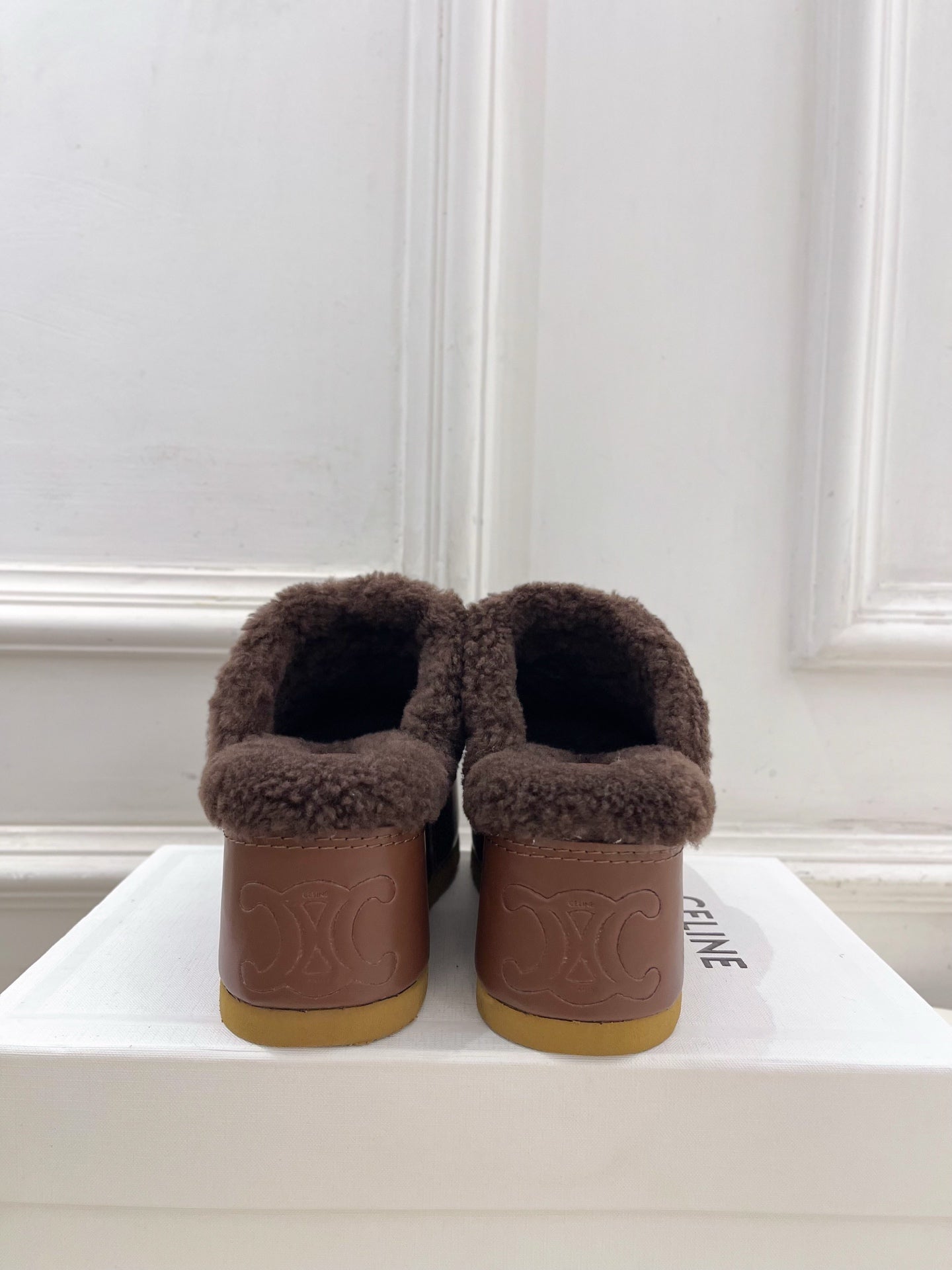 CL 25s Dana Wedge Mule 80mm Reddish Brown Suede Calfskin & Shearling