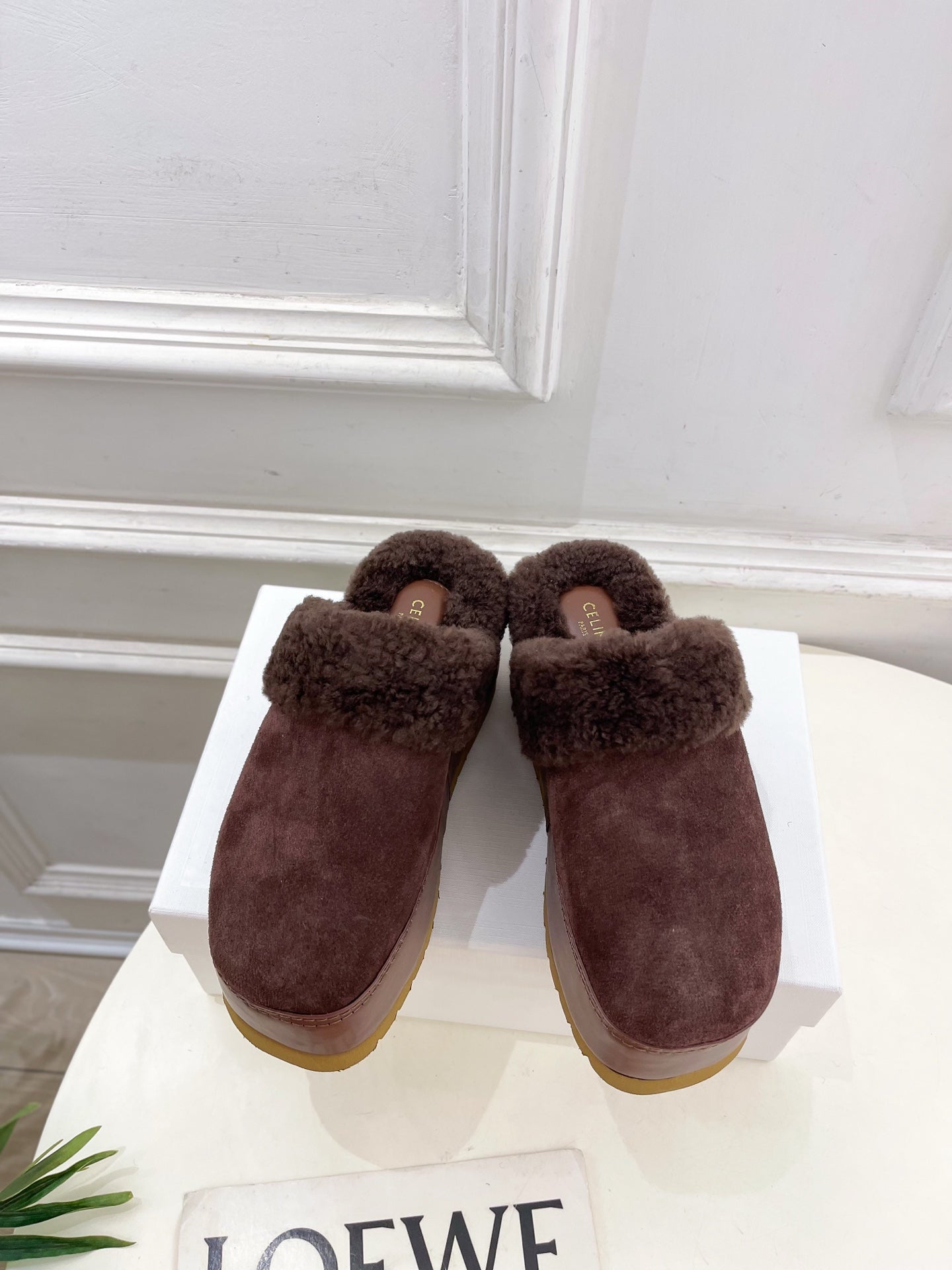 - Material : Suede Calfskin & Shearling