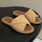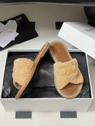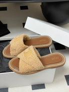 CL 25s Lympia Twisted Sandal Beige Brown Sheepskin Plush Cloth 416656