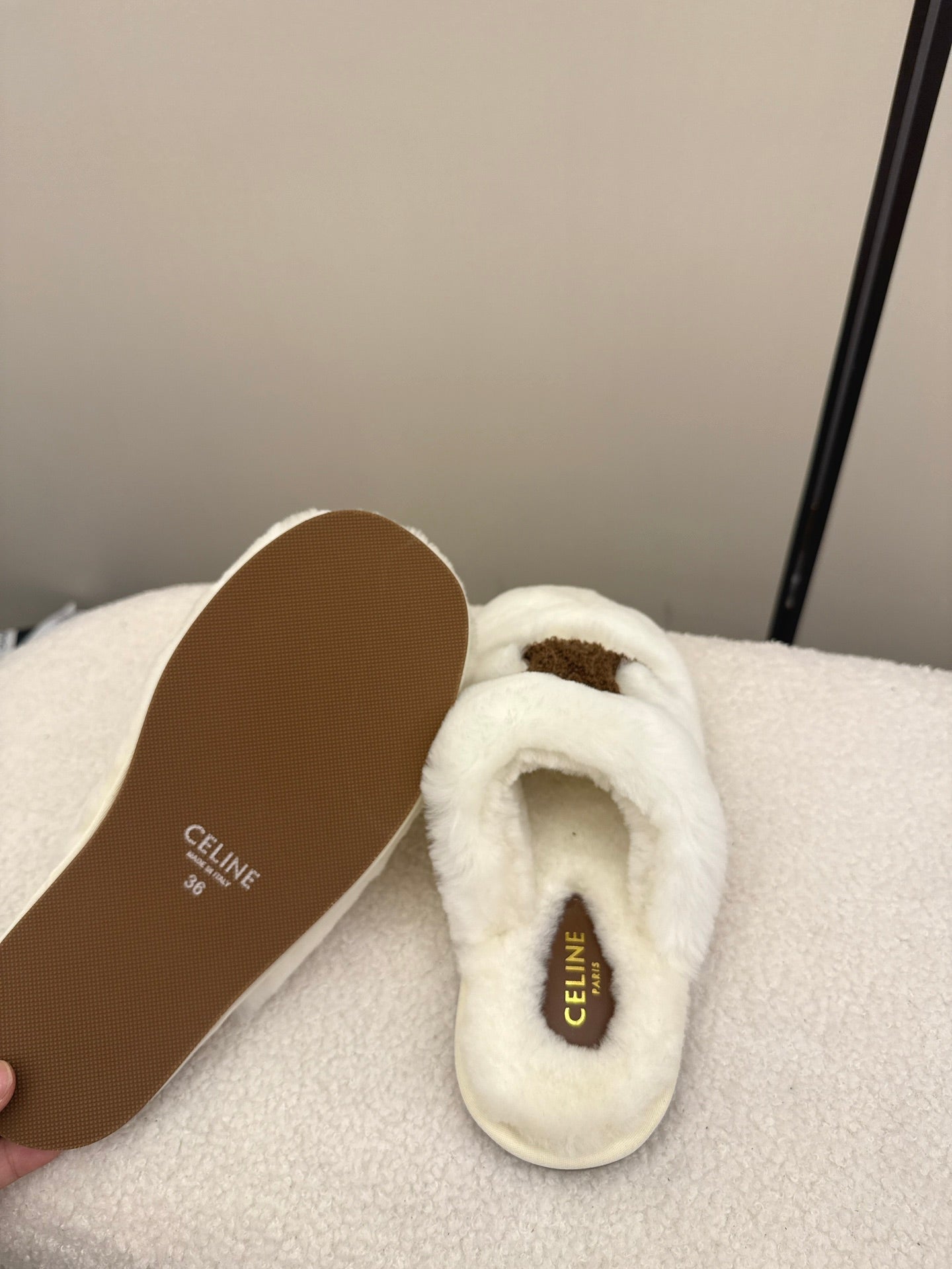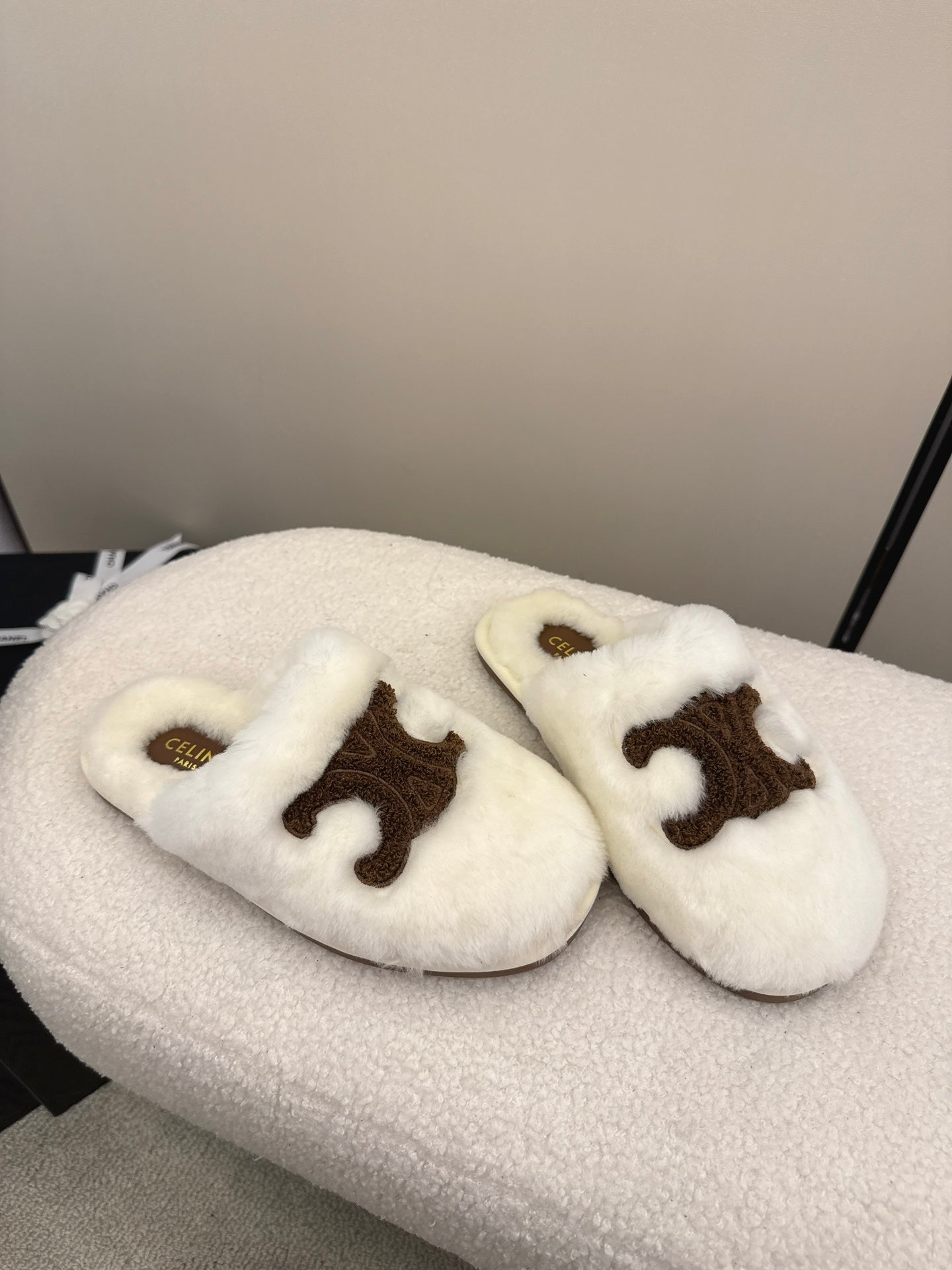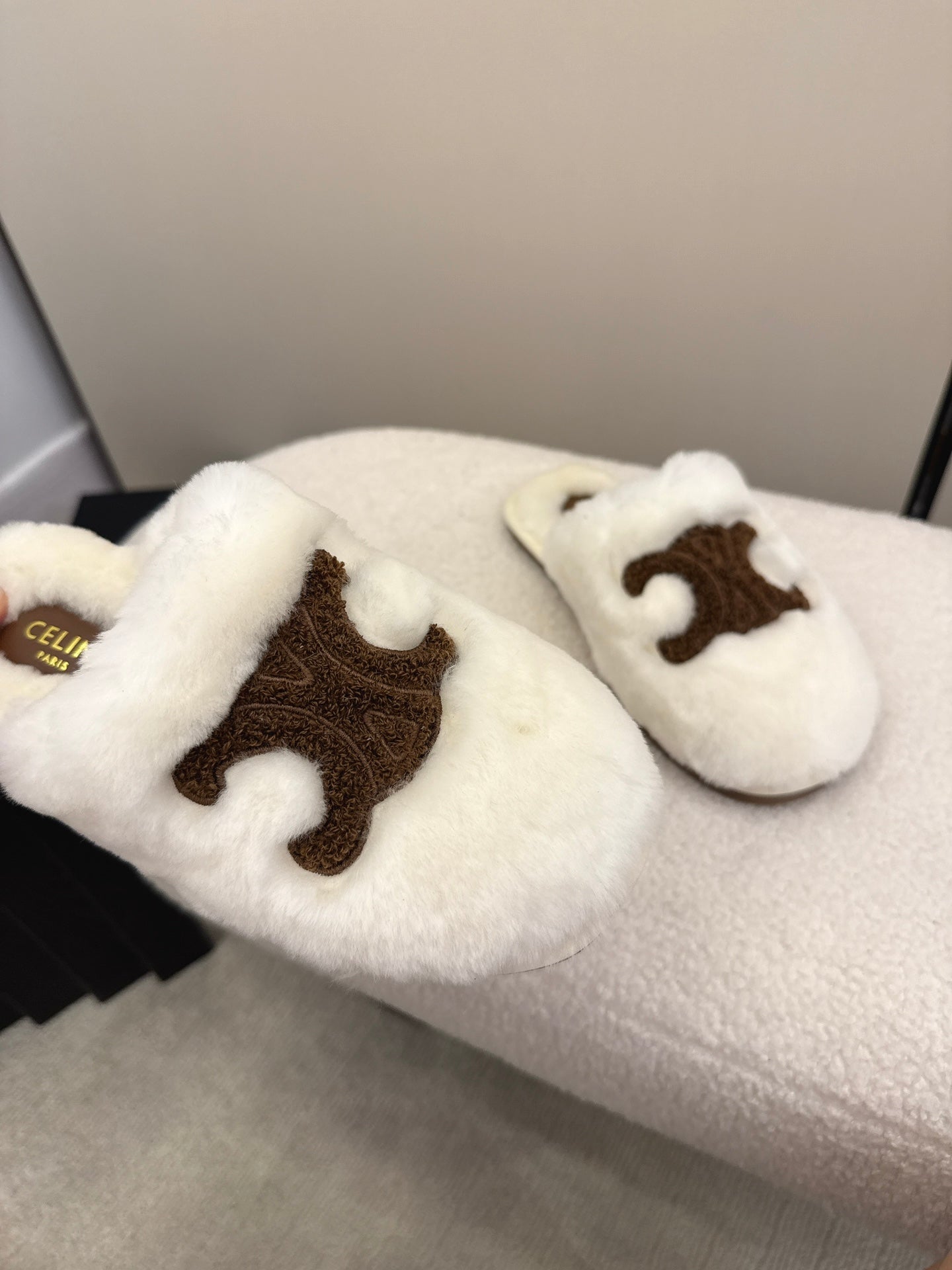 CL Elena Mule in Shearling 10mm White Brown Wool 435860