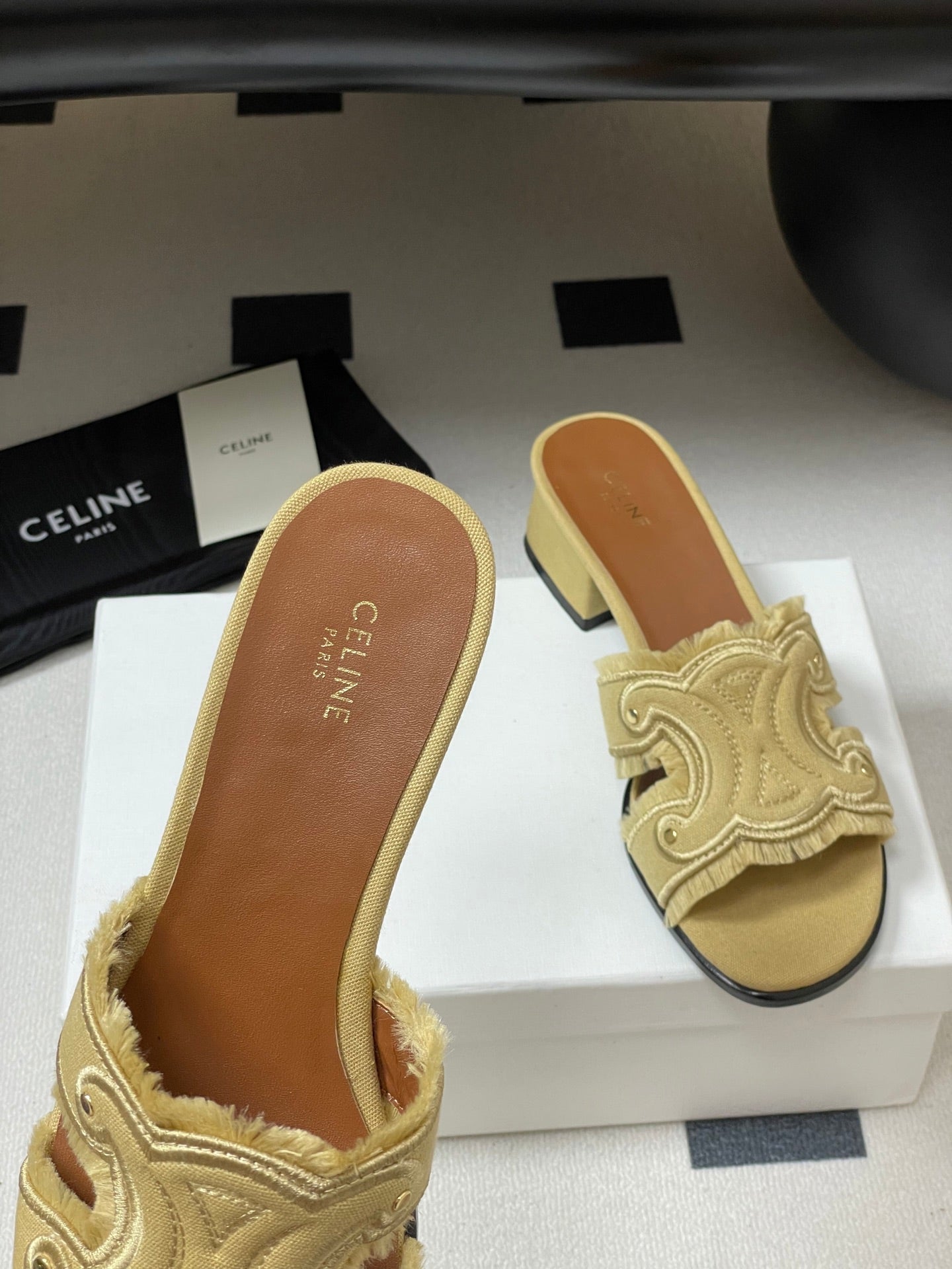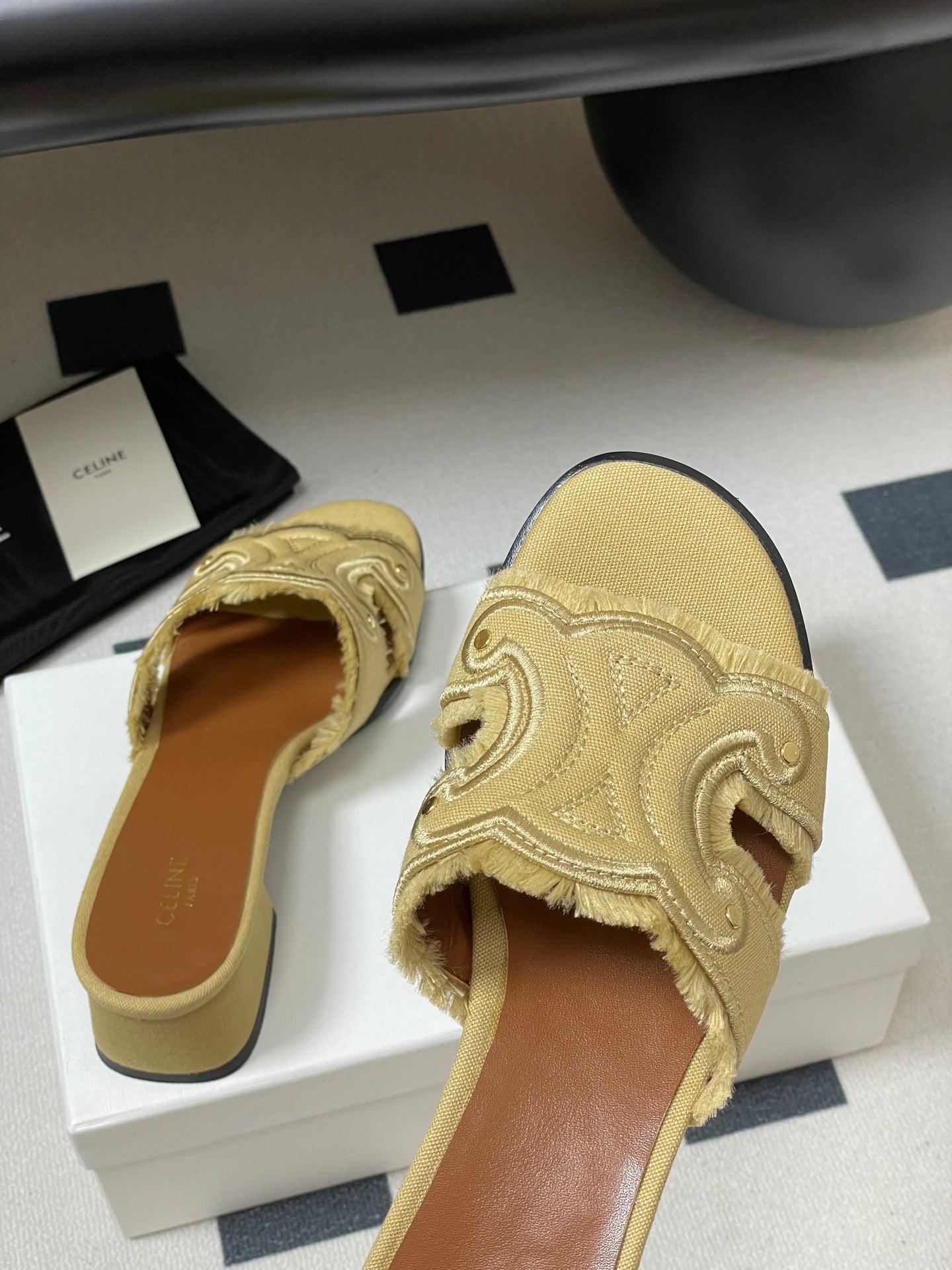 CL Marina Fringed Mule 40mm In Caramel Denim 319737