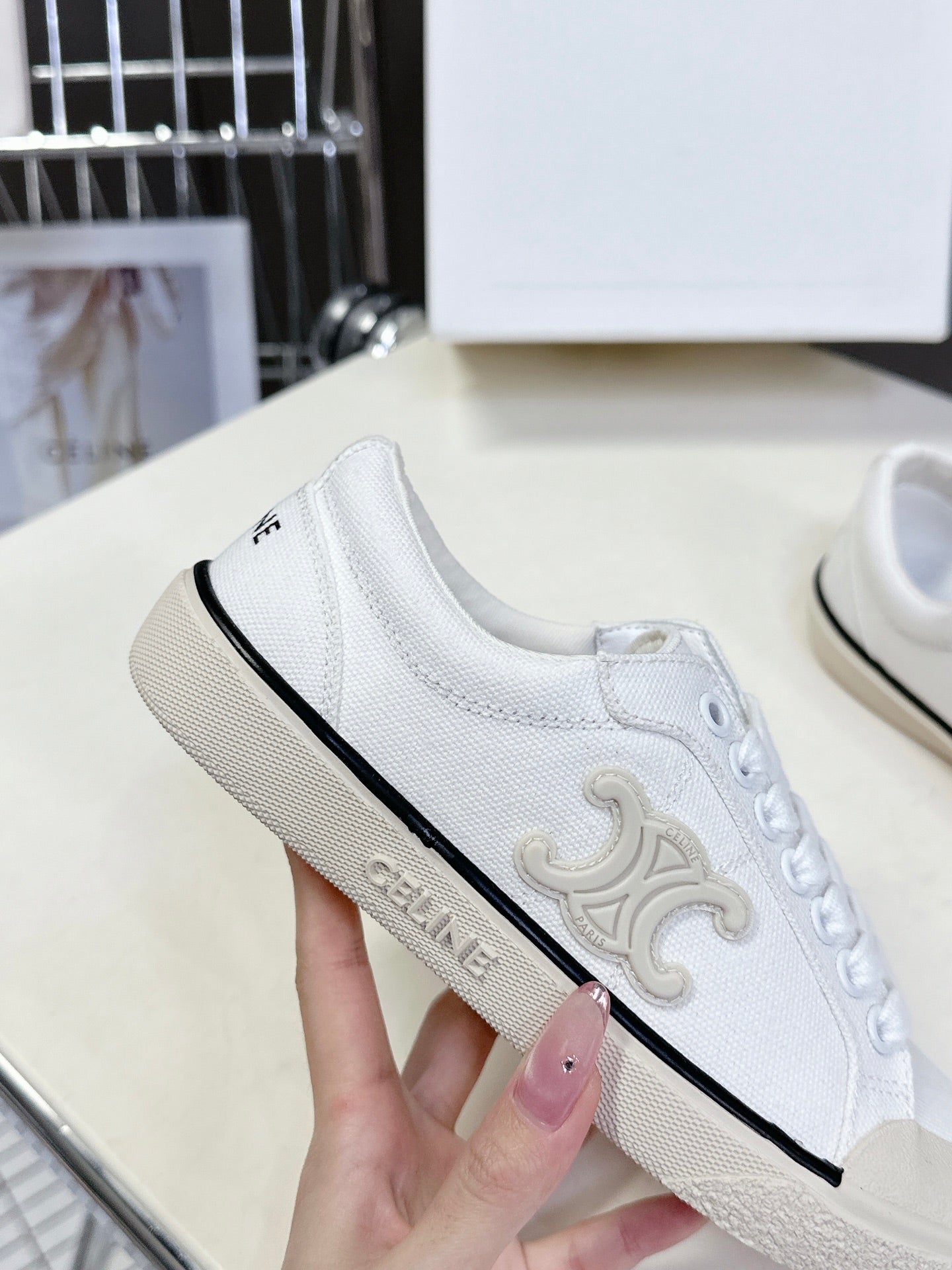 CELINE 25 Sneaker White Beige Canvas 285970