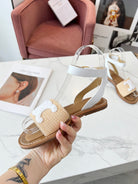 Celine 25C Lympia Sandal Beige mix White Fabric with Calfskin 238161