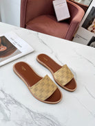 Celine 25C Slippers Egg Nog Monagram Silk with Calfskin 238148