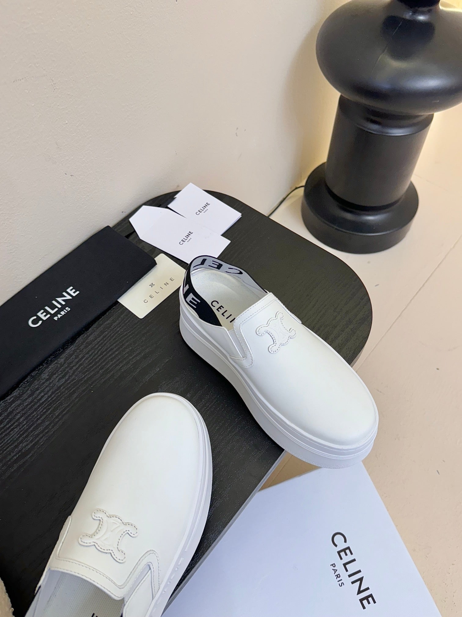 CELINE Block Wedge Mule White Calfskin 235721