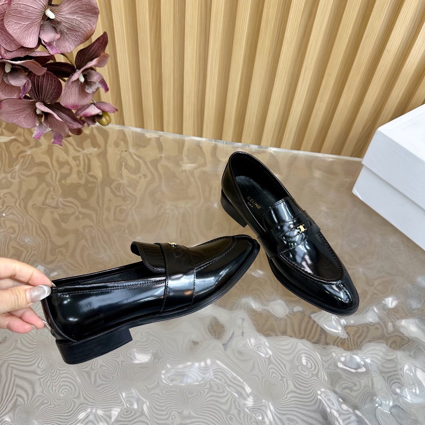 CELINE Loafers Black Leather 285917