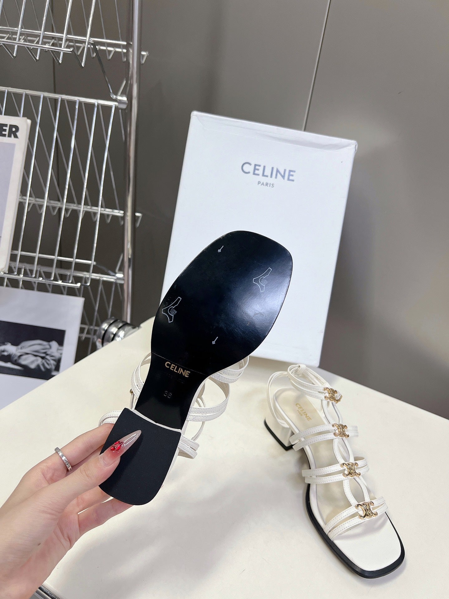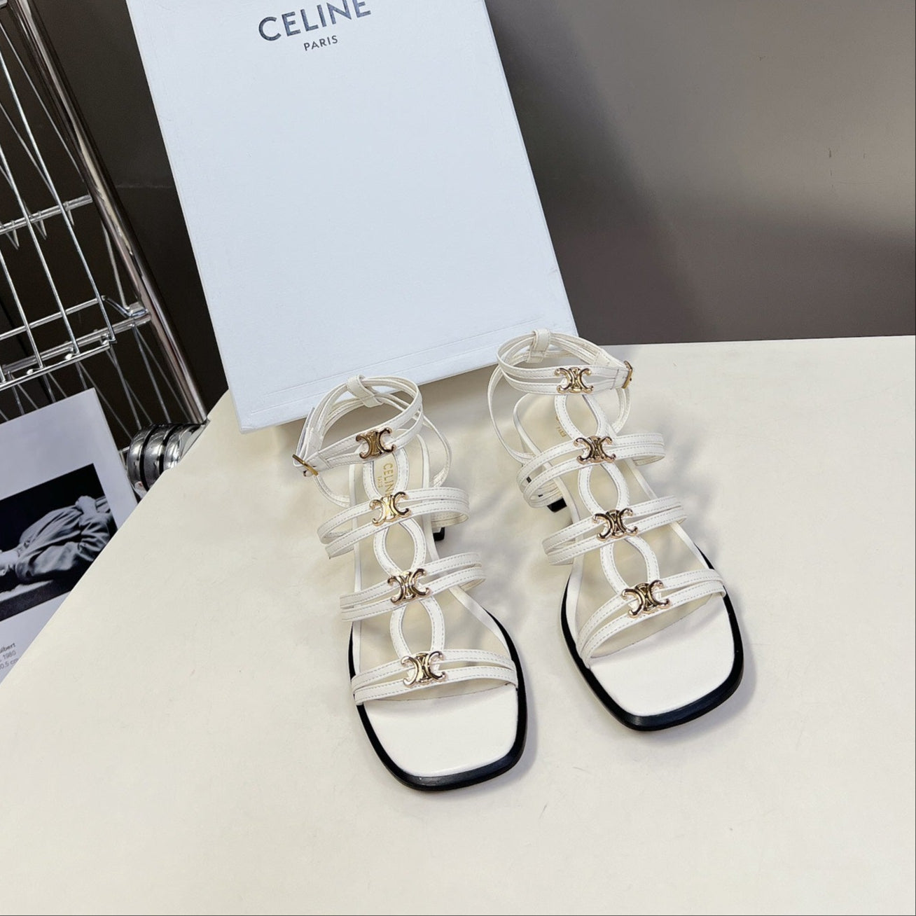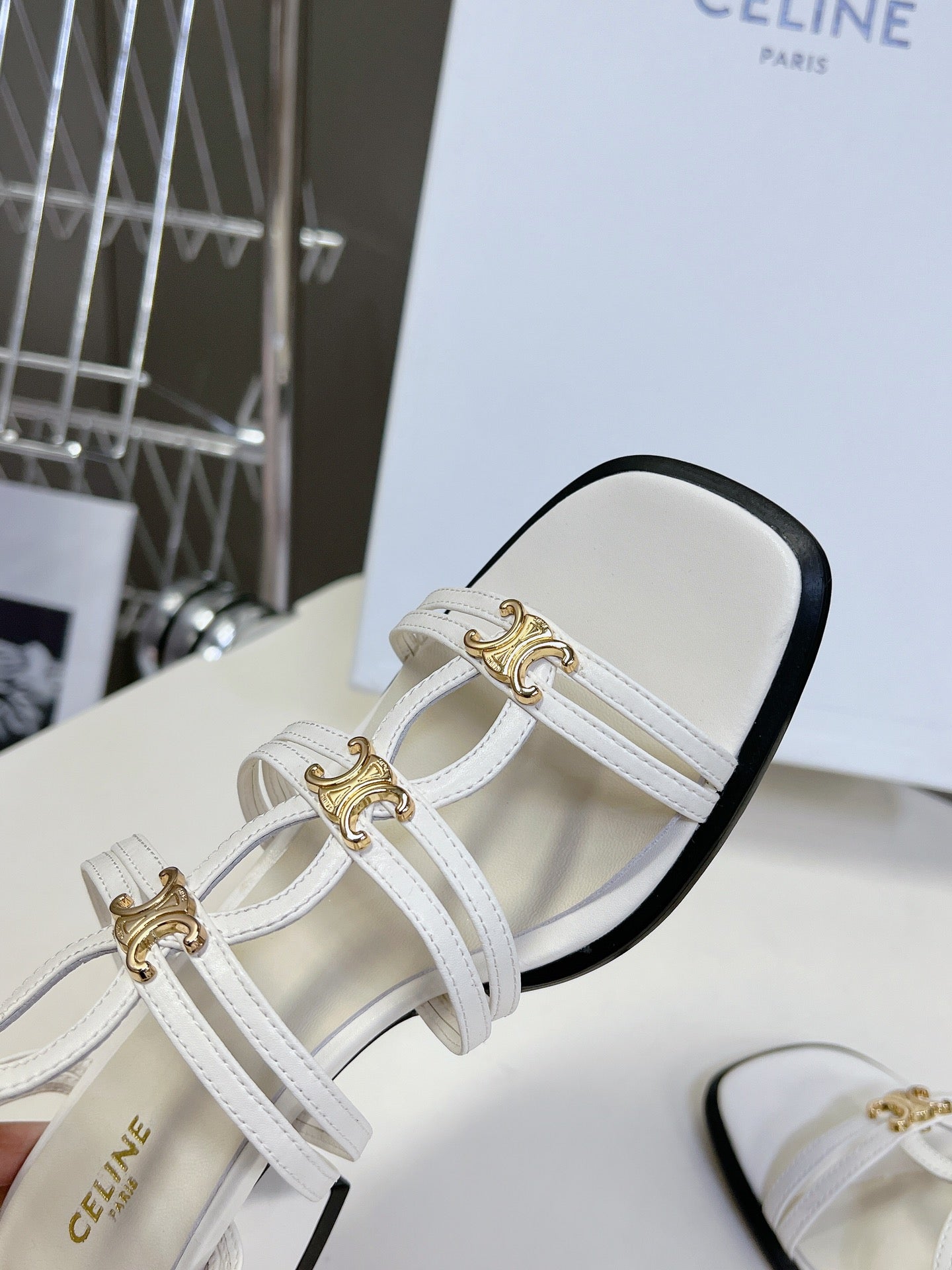 CELINE Sandals Clemence Multi White Leather