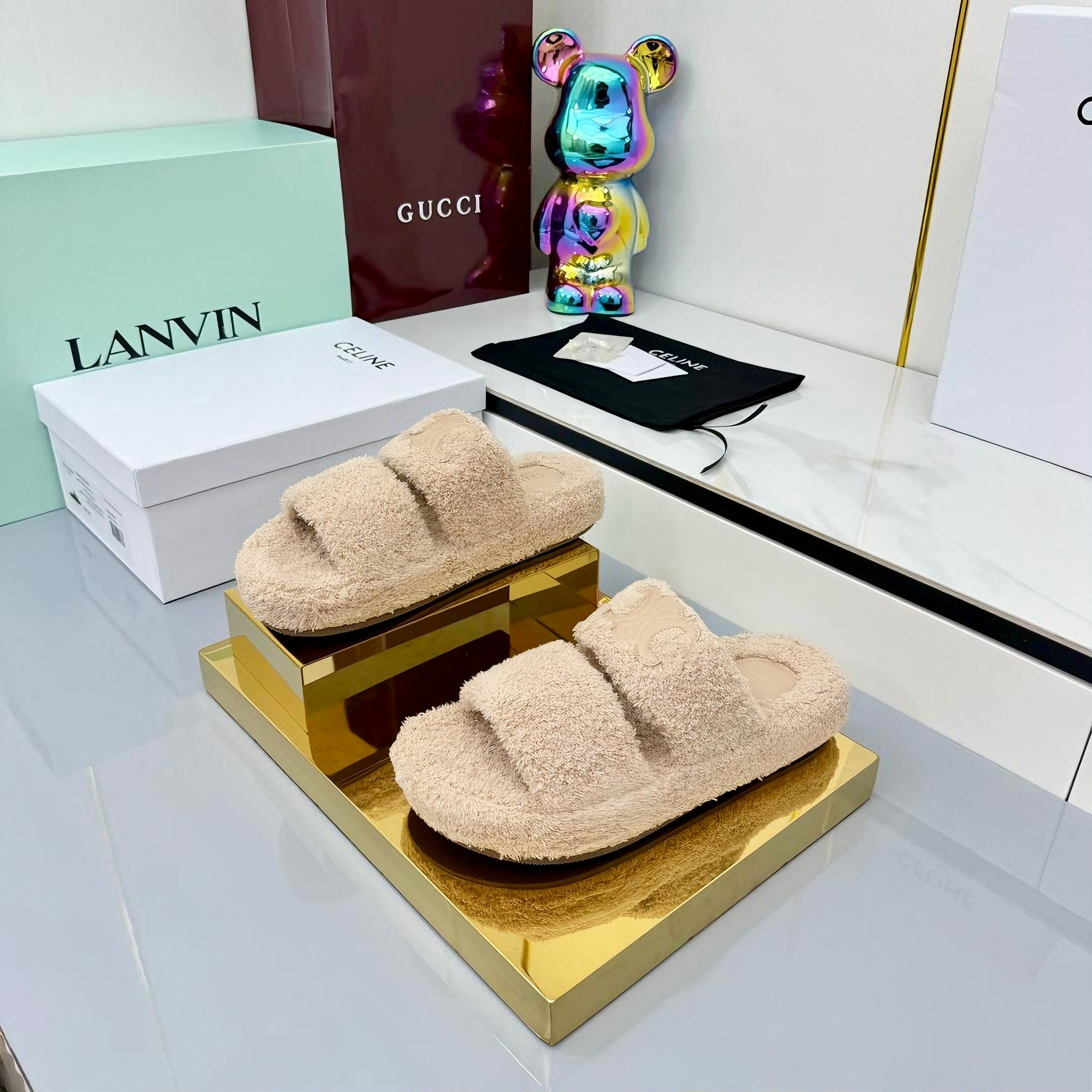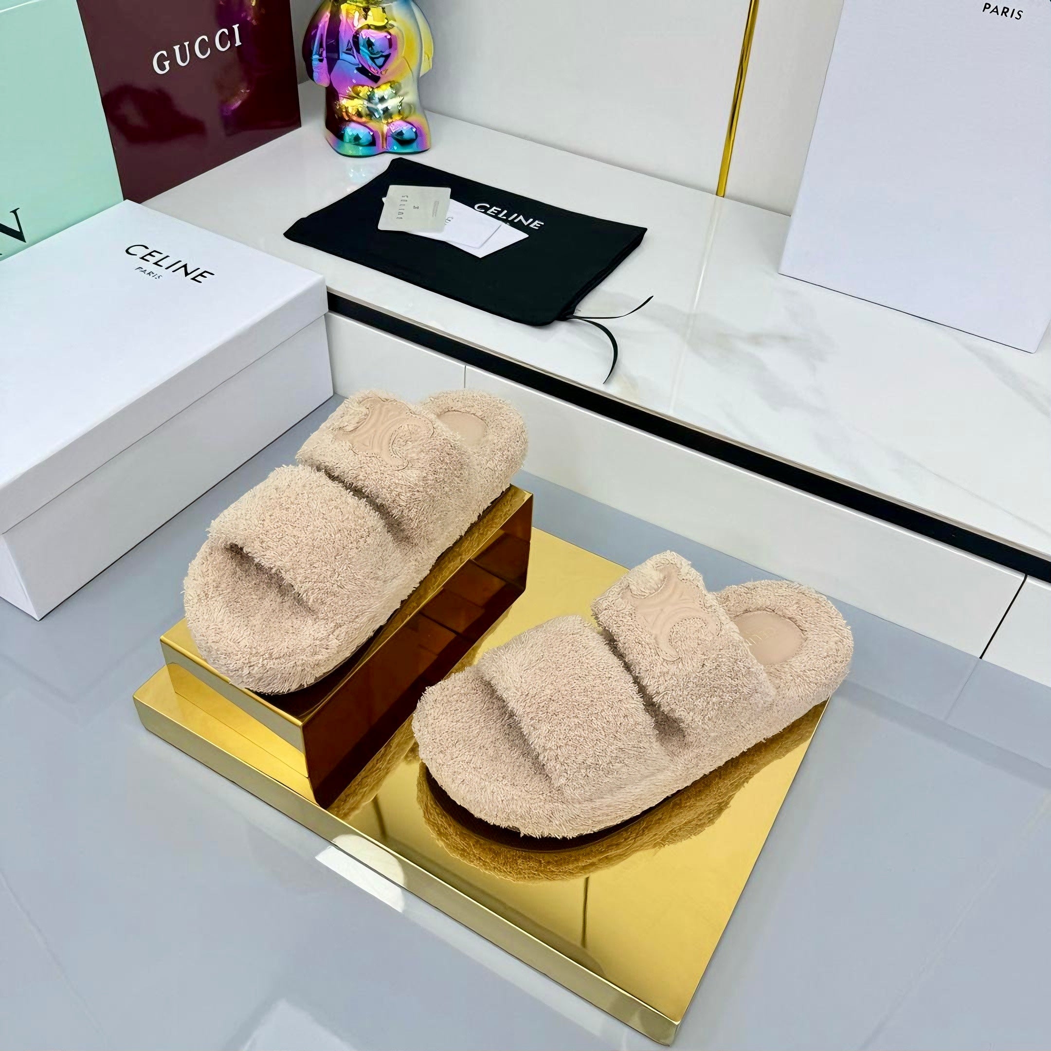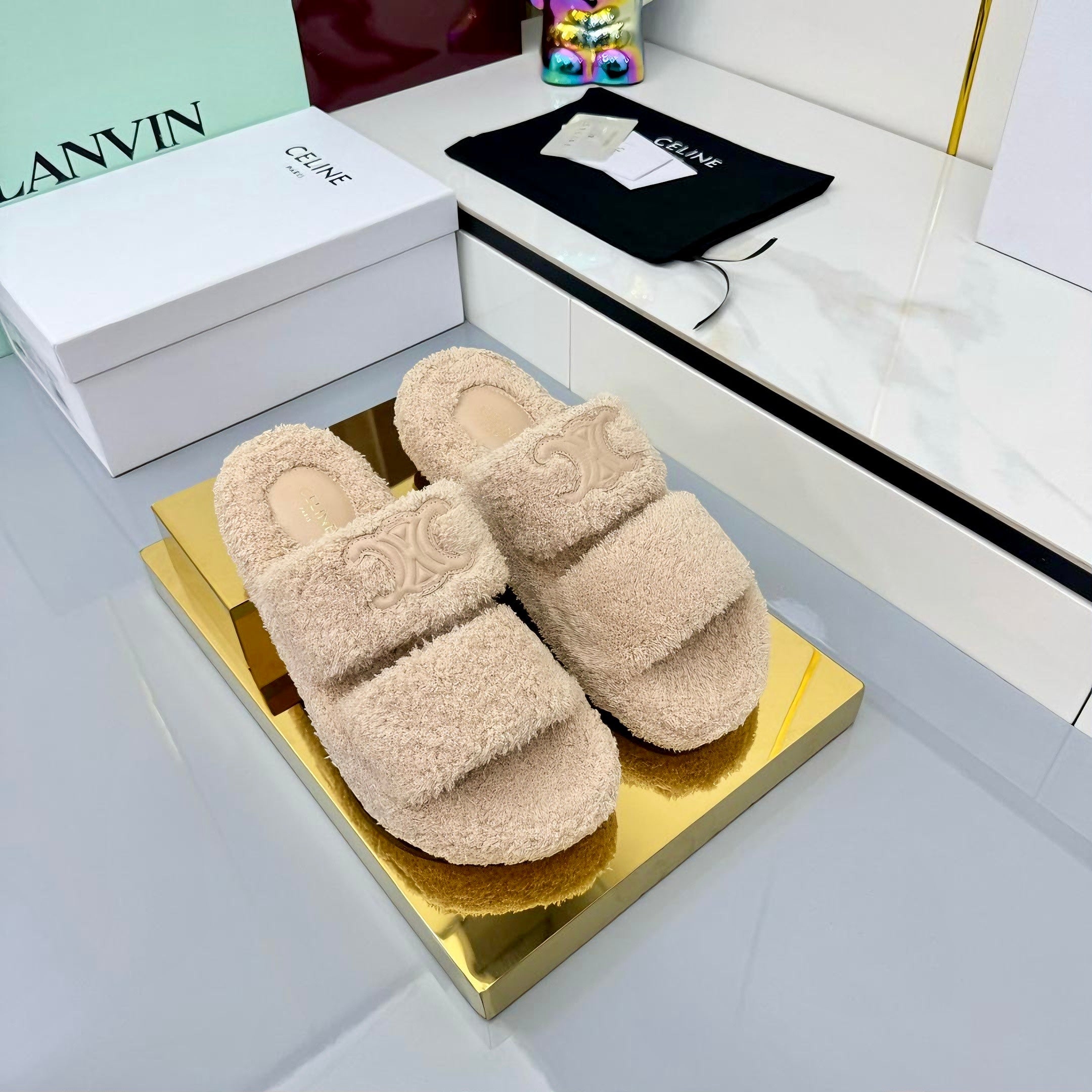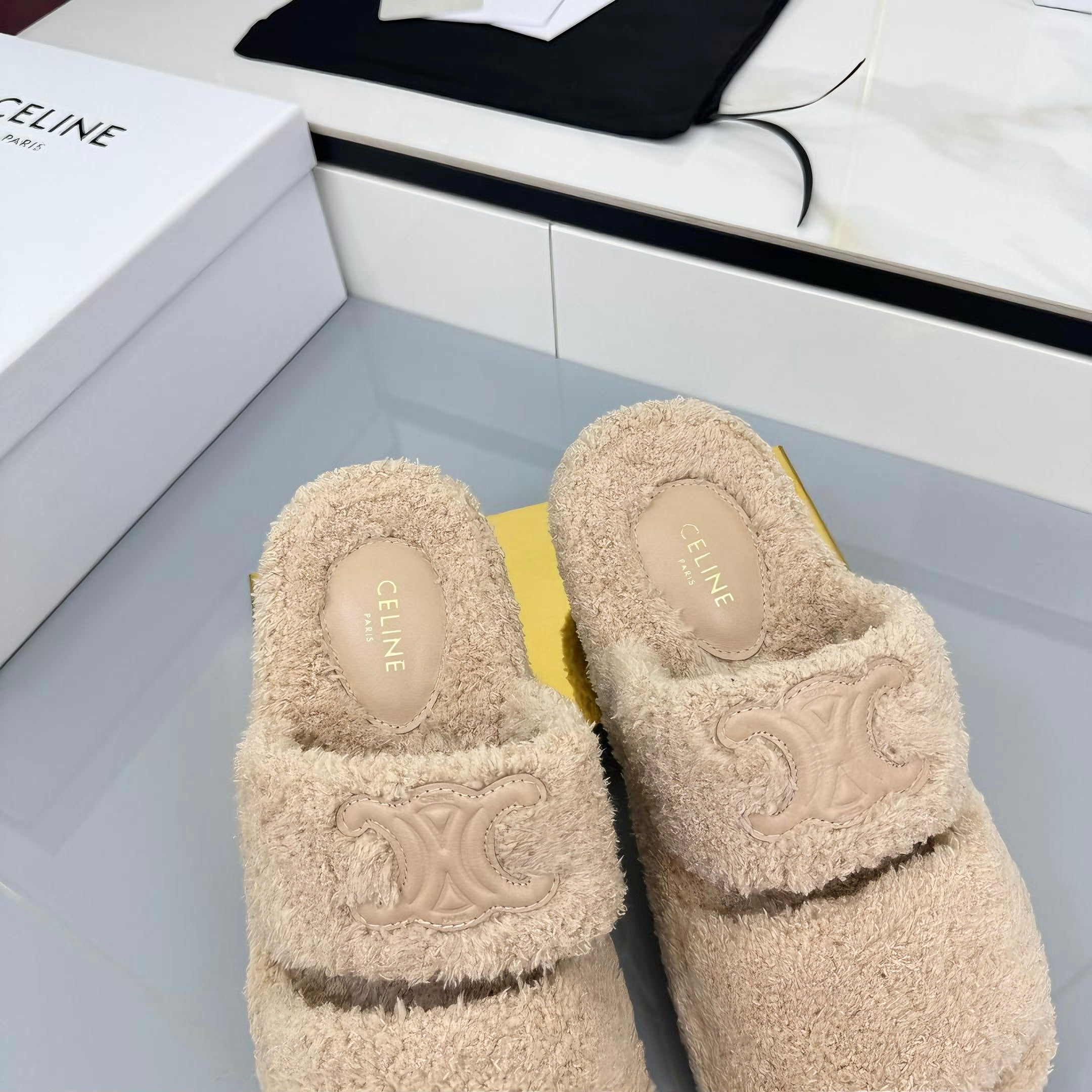 CL 25s Triomphe Slides 50mm Beige Wool & Rubber 434461