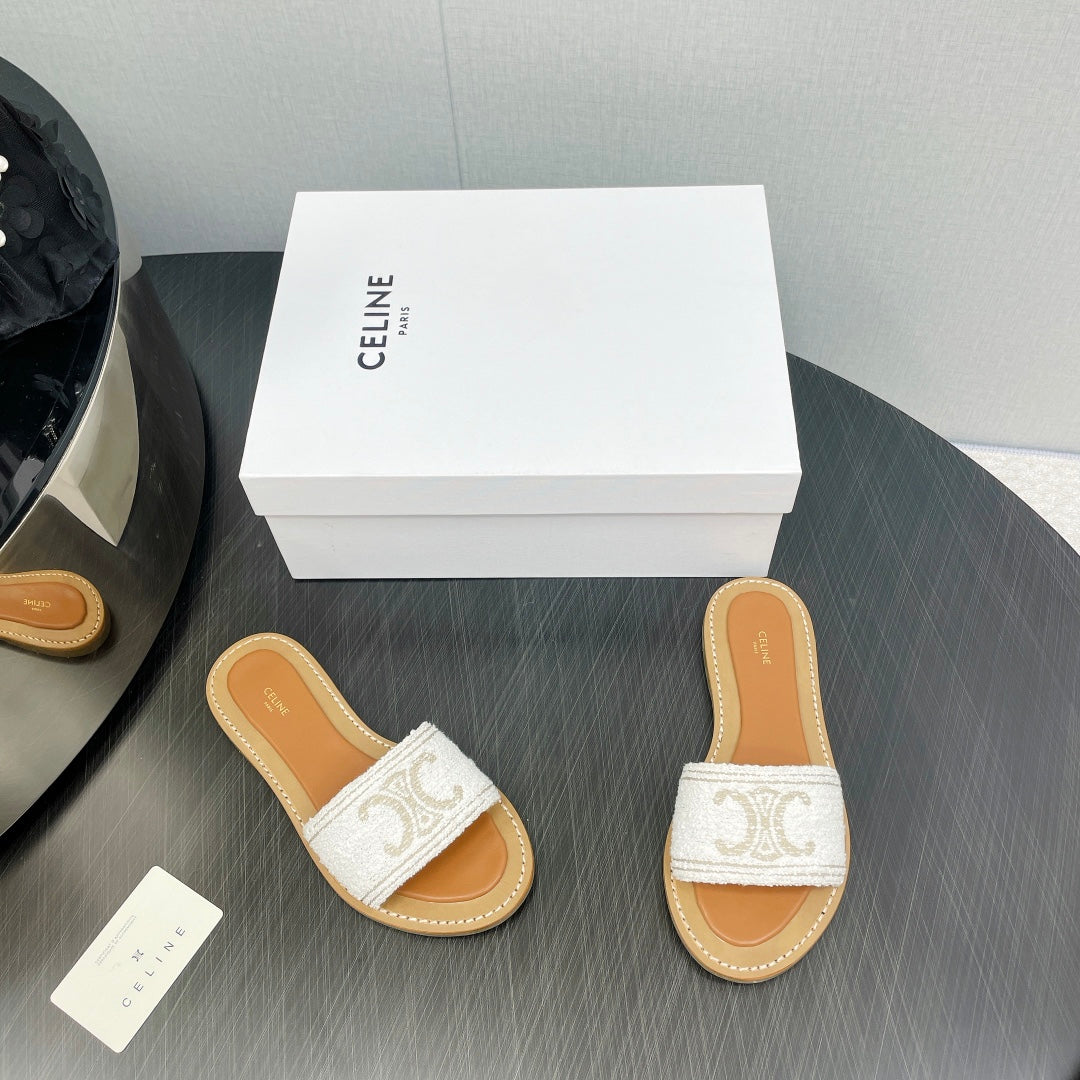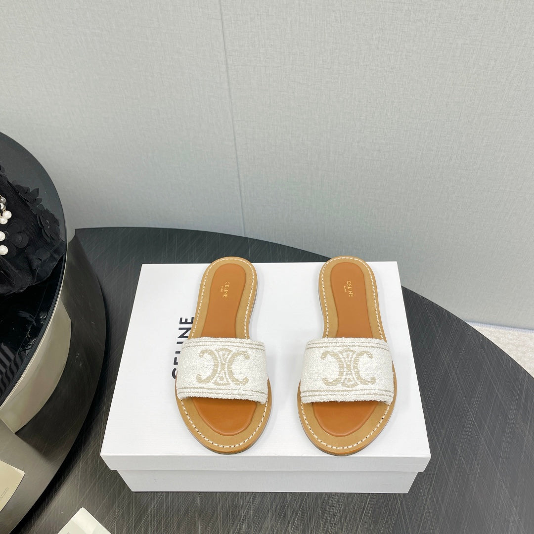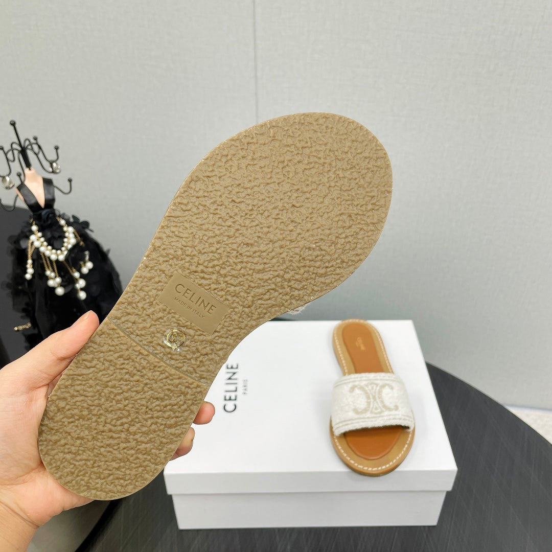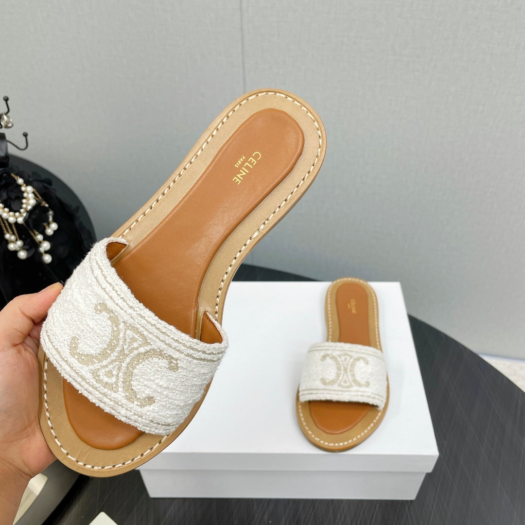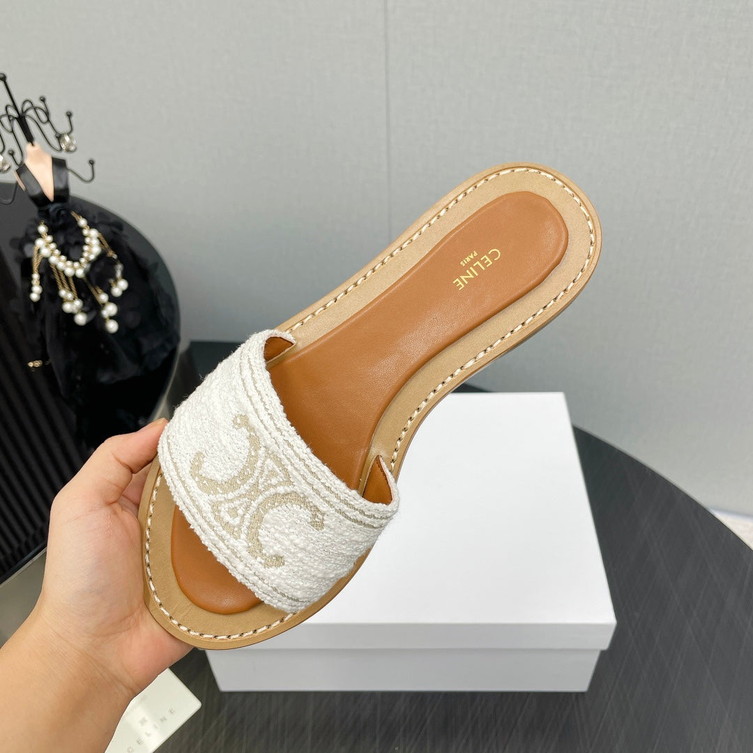 LYMPIA MULE IN TRIOMPHE JACQUARD WOOLLEN FABRIC ECRU