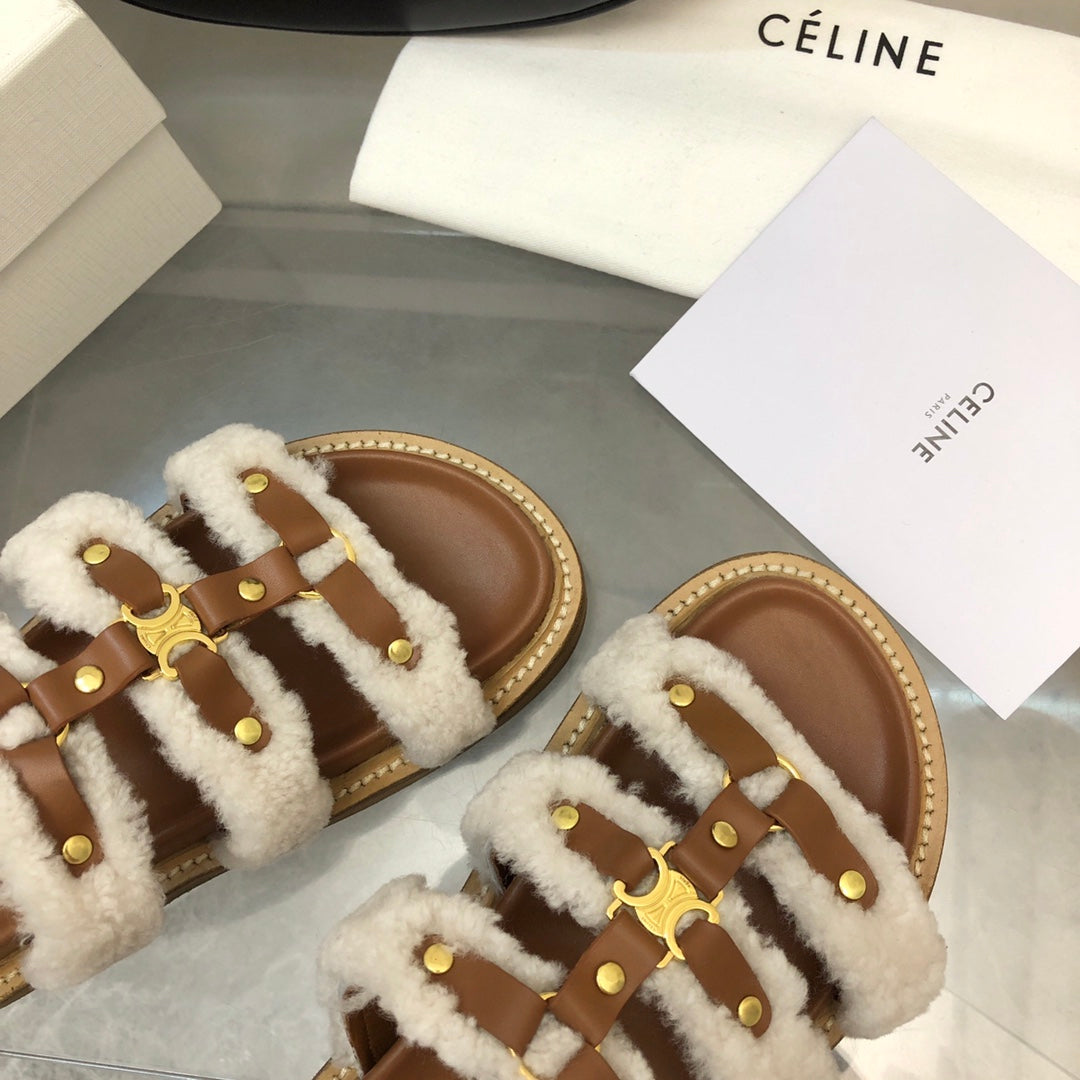 TIPPI SLIDE IN WHITE SHEARLING AND BROWN CALFSKIN