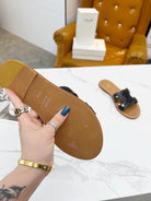 TRIOMPHE SLIDE IN BLACK CALFSKIN