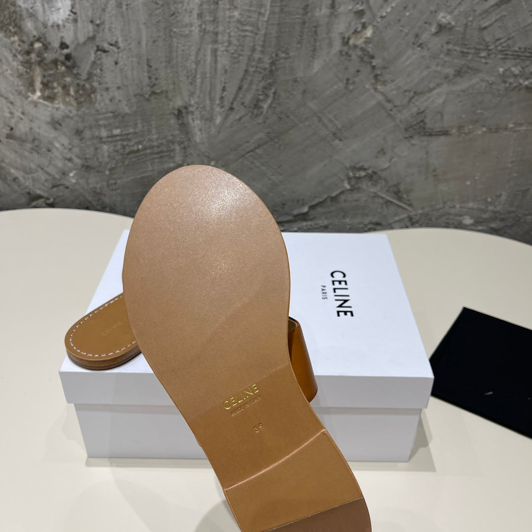 WOMEN TRIOMPHE FLAT THONG IN CALFSKIN DARK BROWN