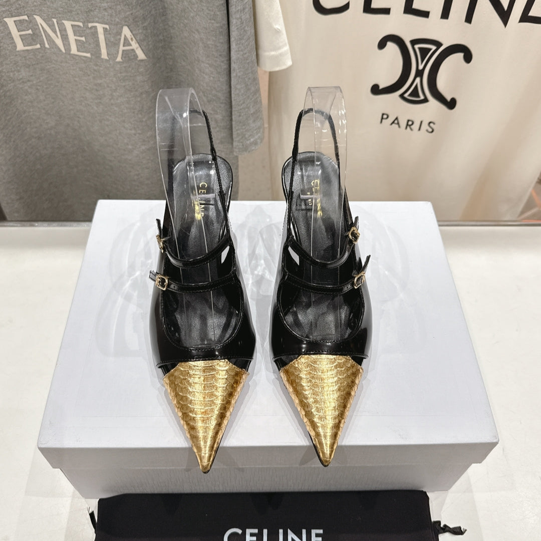 Celine 25C Slingback Pump Black mix Gold Sheepskin 236771