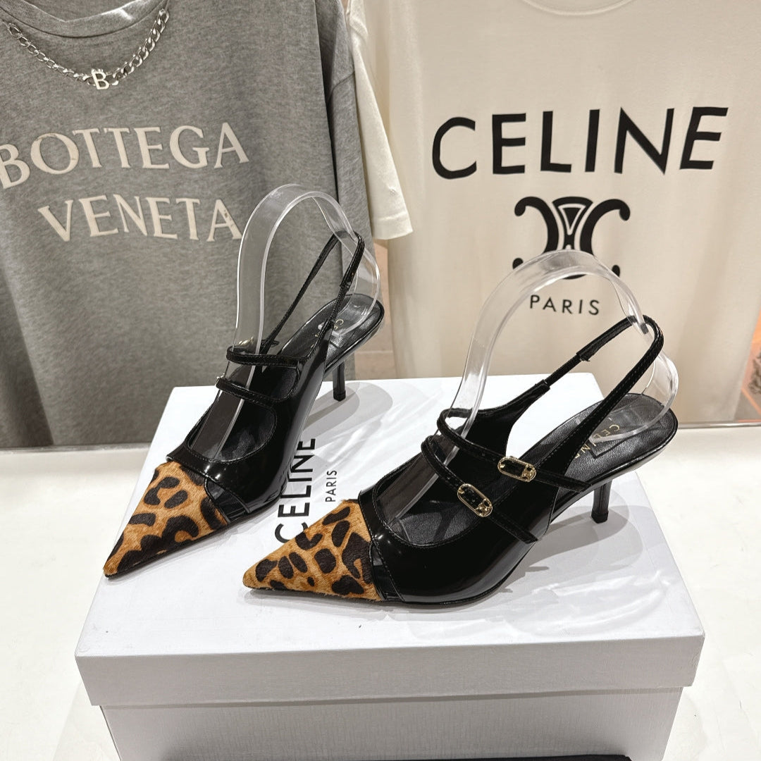 Celine 25C Slingback Pump Black mix Brown Sheepskin 236773