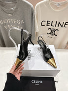 Celine 25C Slingback Pump Black mix Gold Sheepskin 236771