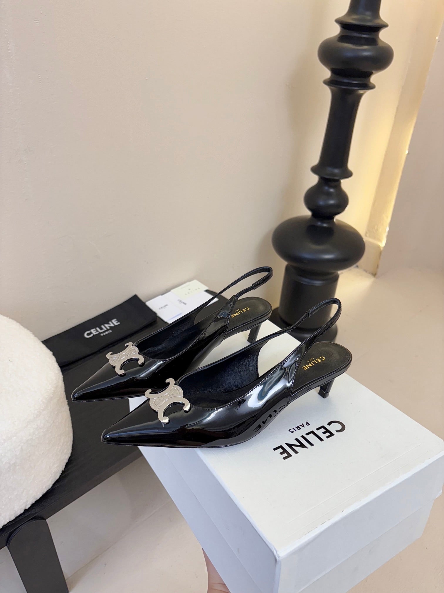 CELINE Alma Triomphe Slingback Black Patent Calfskin 235705