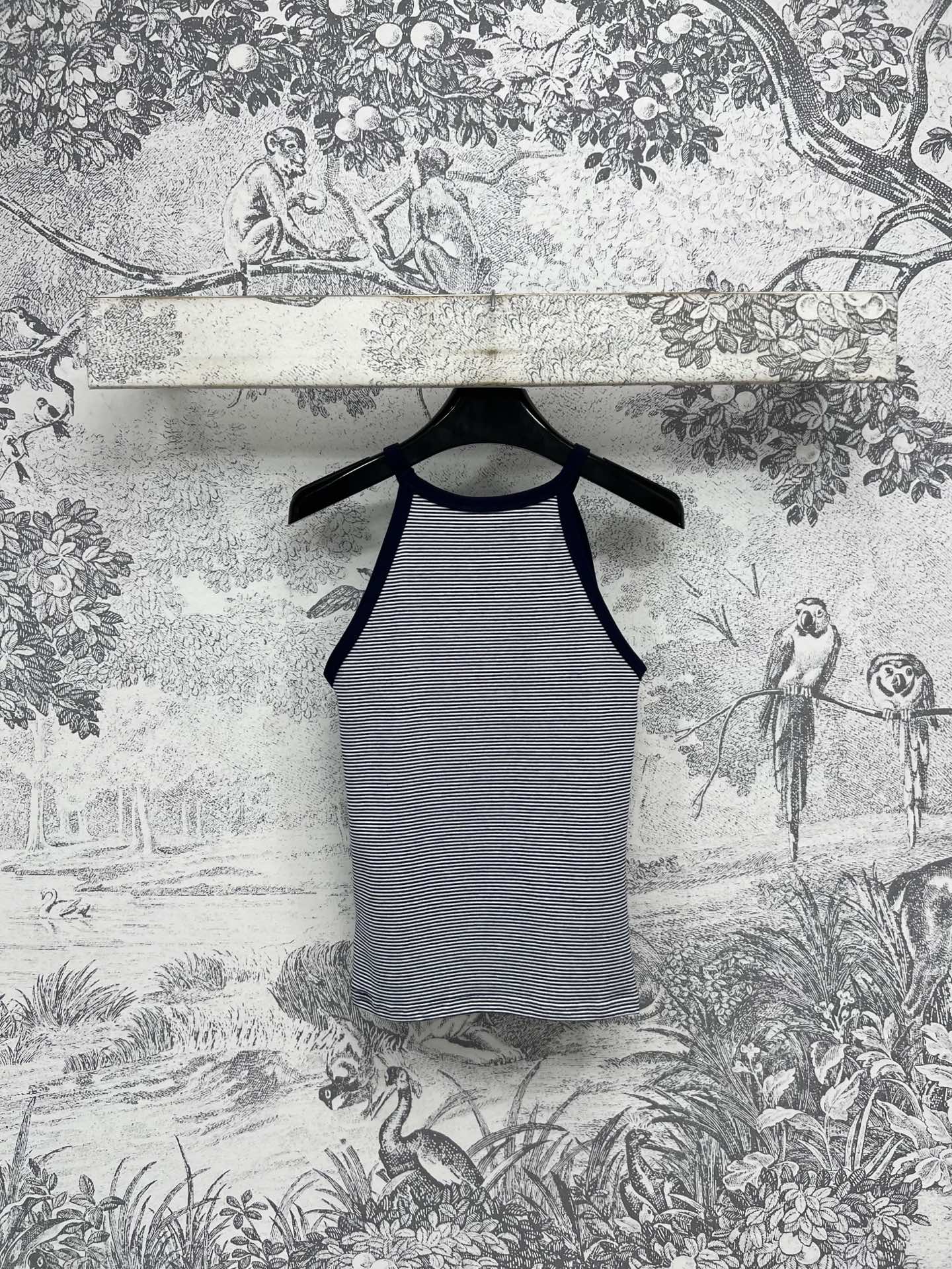Celine 25 Embroidered Logo Striped Small Vest Navy Blue mix White Cotton
